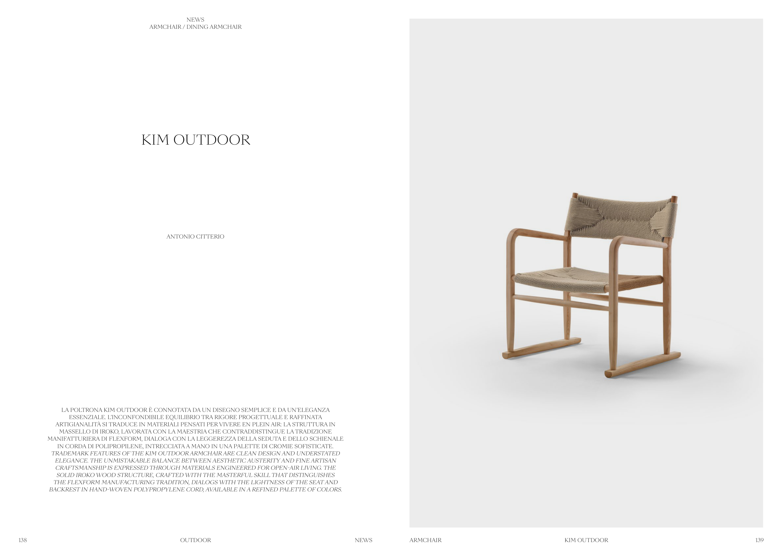 TRADEMARK FEATURES OF THE KIM OUTDOOR ARMCHAIR ARE CLEAN DESIGN AND UNDERSTATED
