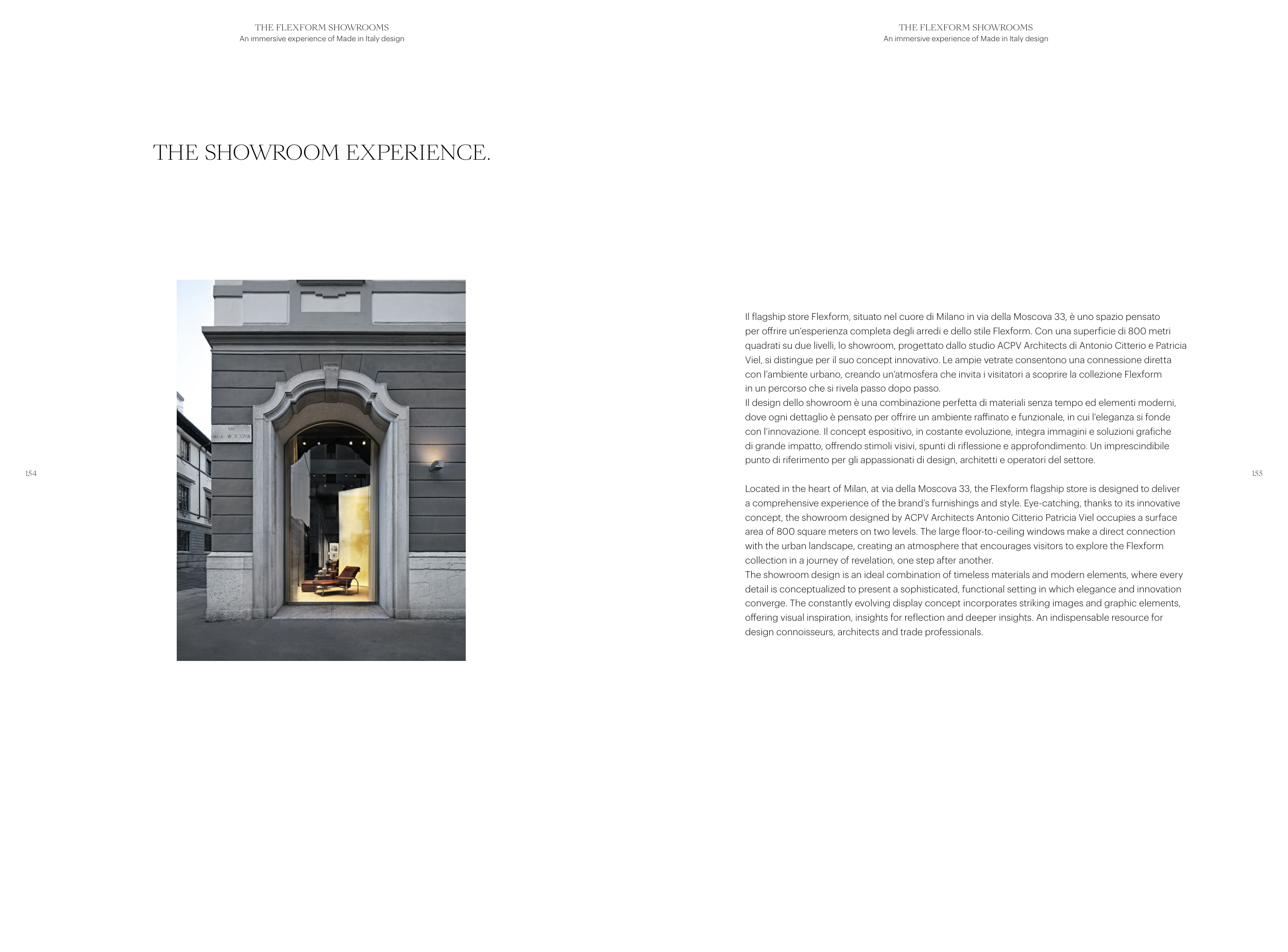 per offrire un’esperienza completa degli arredi e dello stile Flexform. Con una superficie di 800 metri