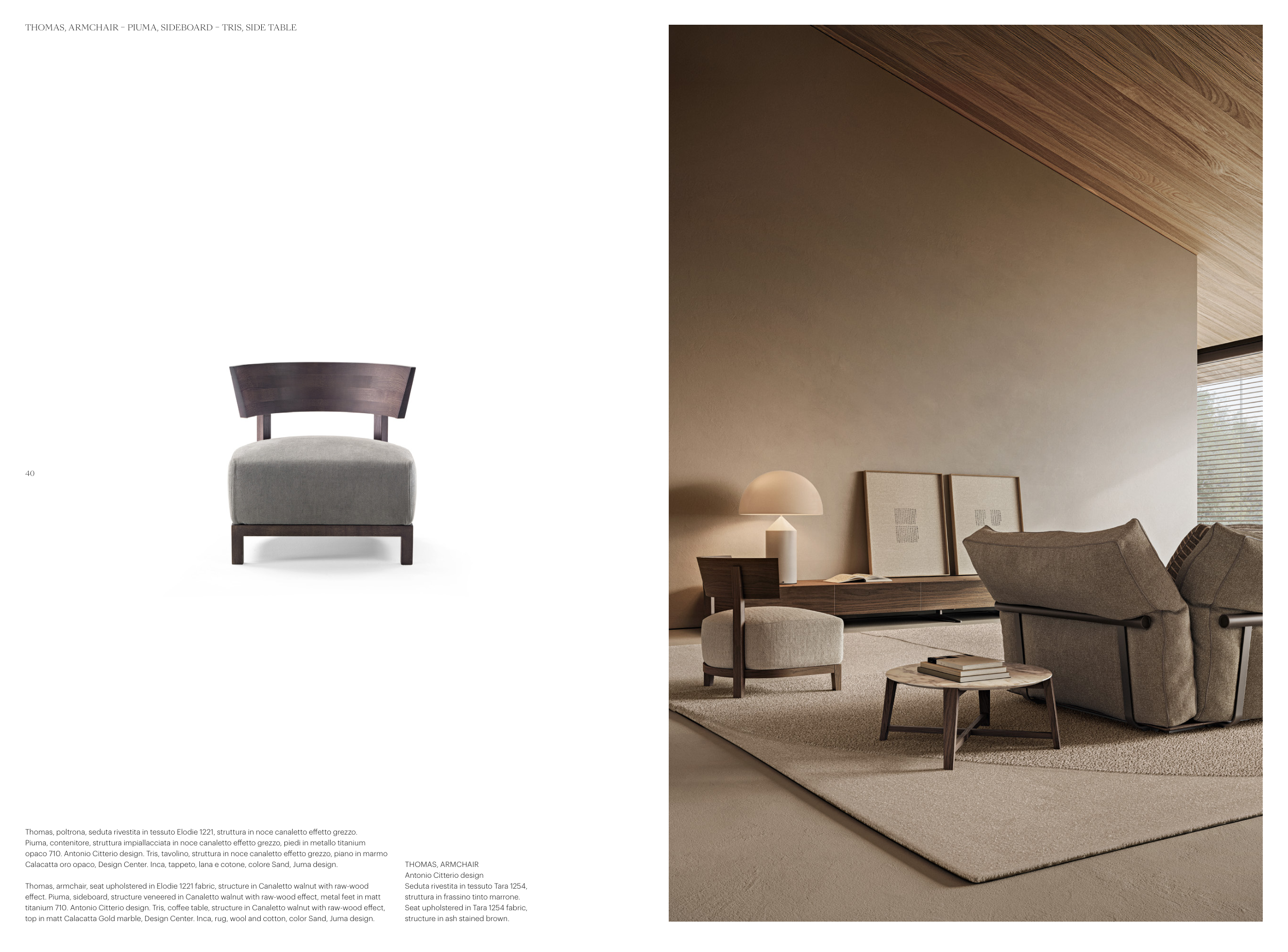 THOMAS, ARMCHAIR – PIUMA, SIDEBOARD – TRIS, SIDE TABLE