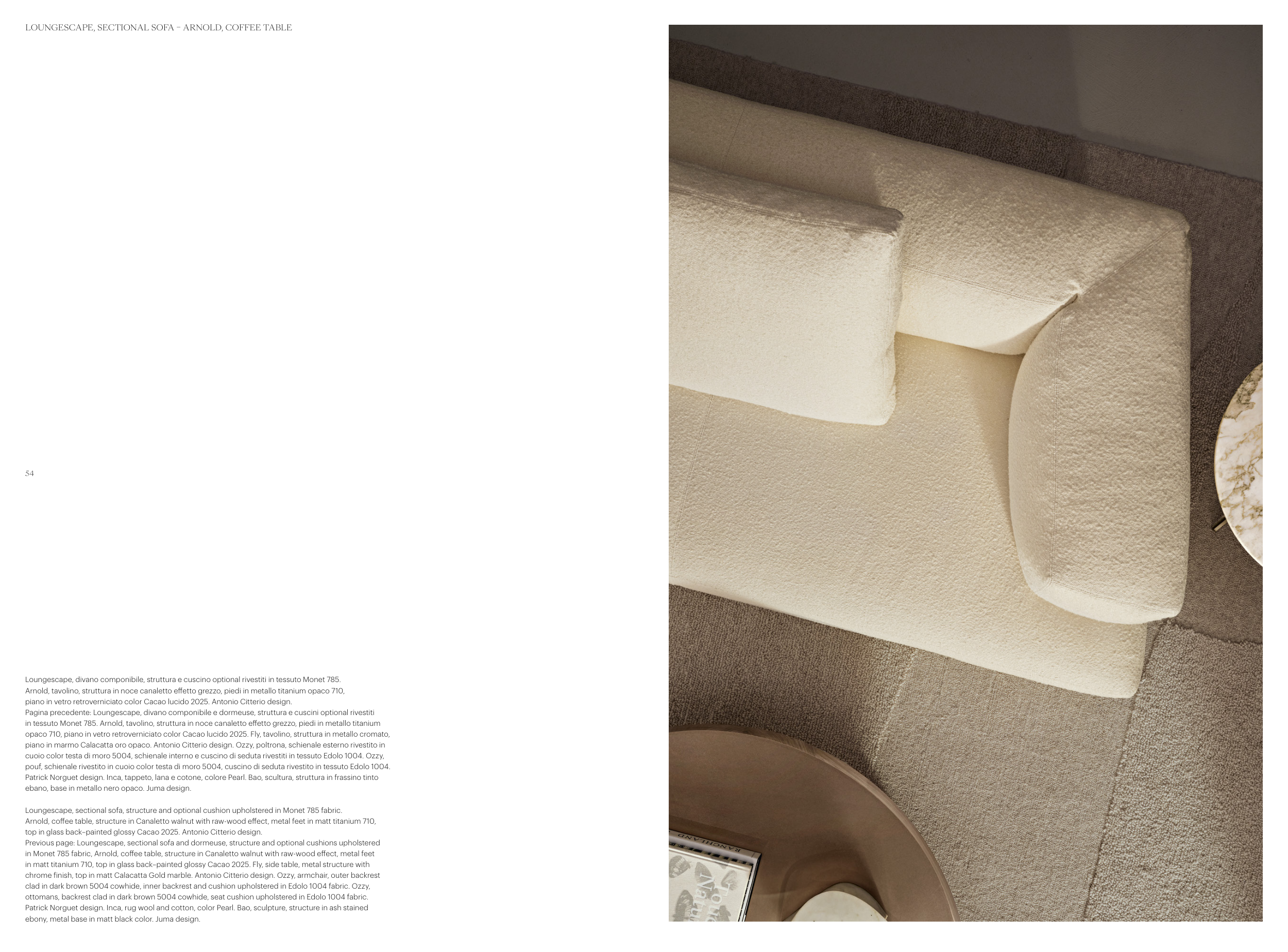 piano in marmo Calacatta oro opaco. Antonio Citterio design. Ozzy, poltrona, schienale esterno rivestito in