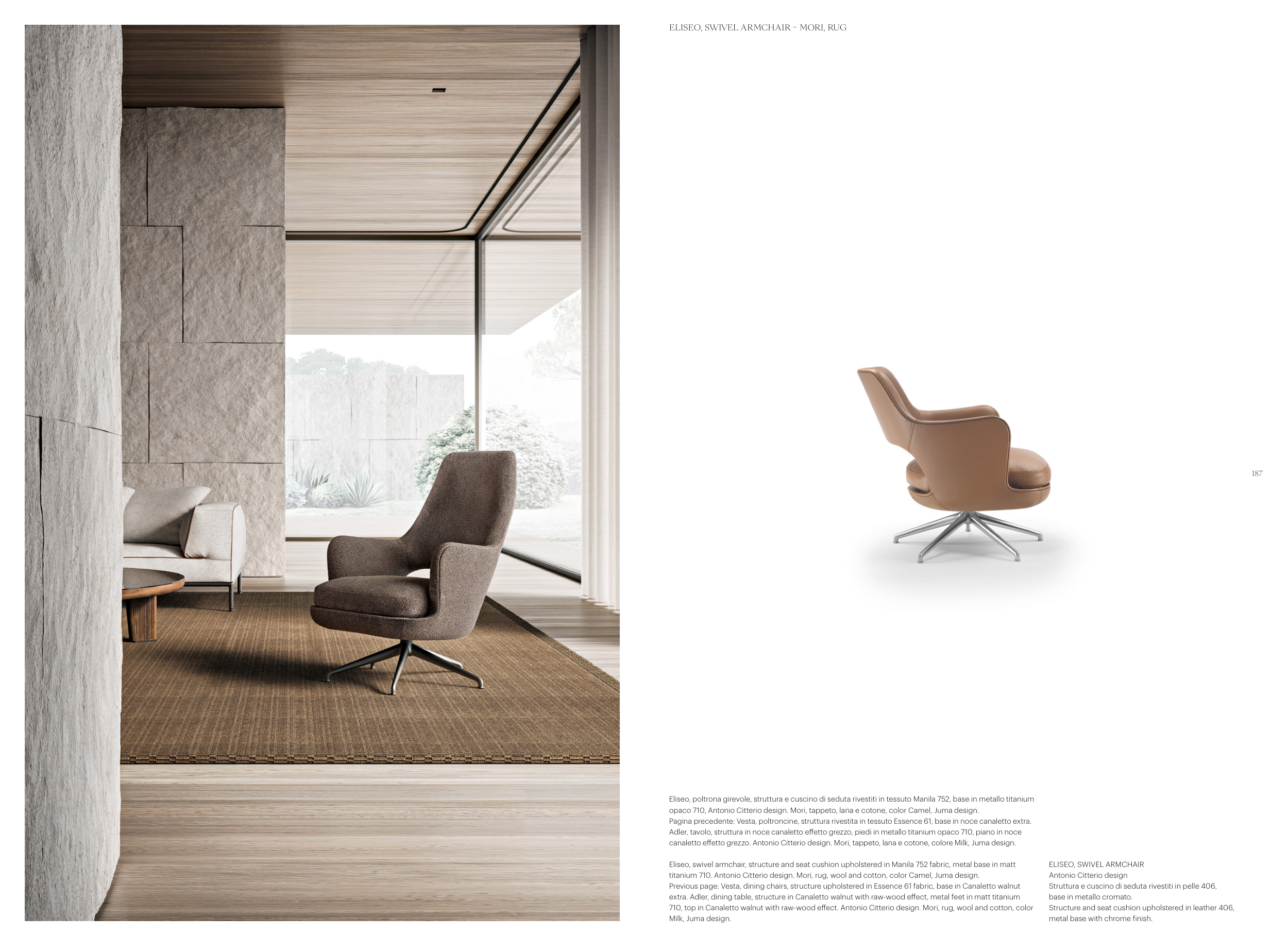 ELISEO, SWIVEL ARMCHAIR – MORI, RUG