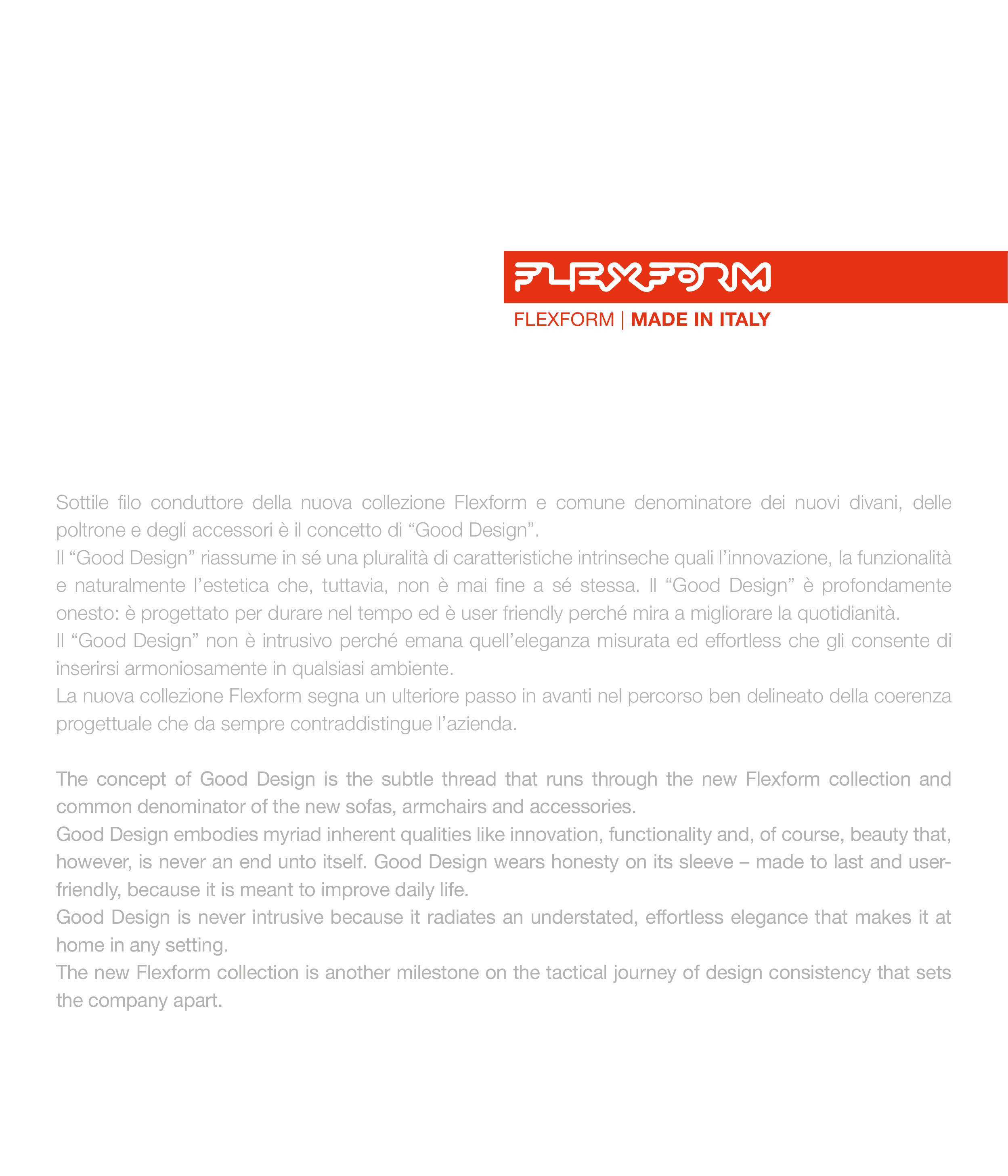 The concept of Good Design is the subtle thread that runs through the new Flexform collection and