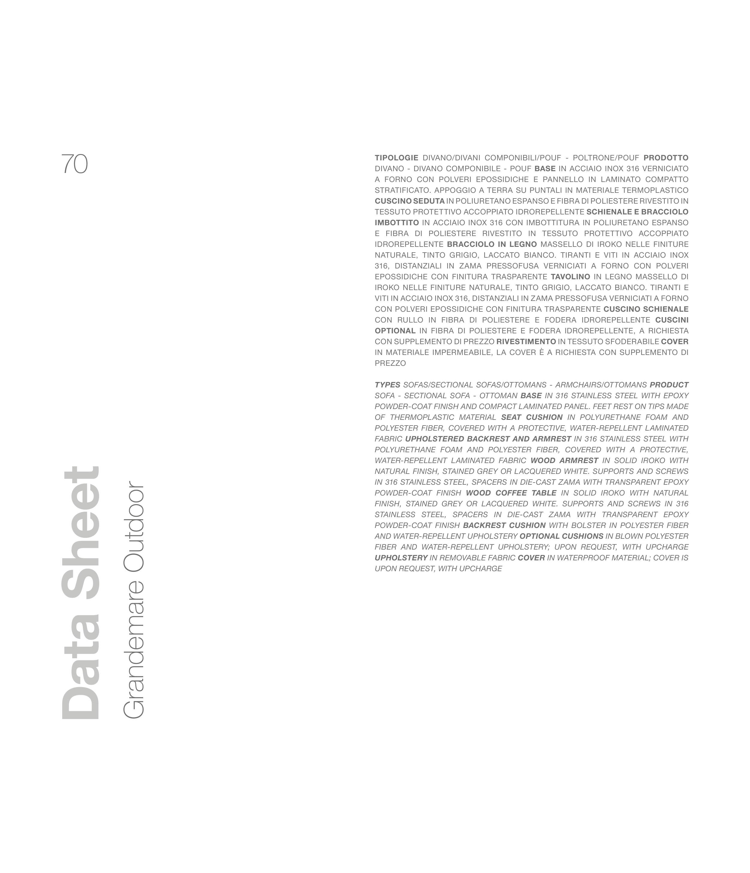 AND WATER-REPELLENT UPHOLSTERY OPTIONAL CUSHIONS IN BLOWN POLYESTER