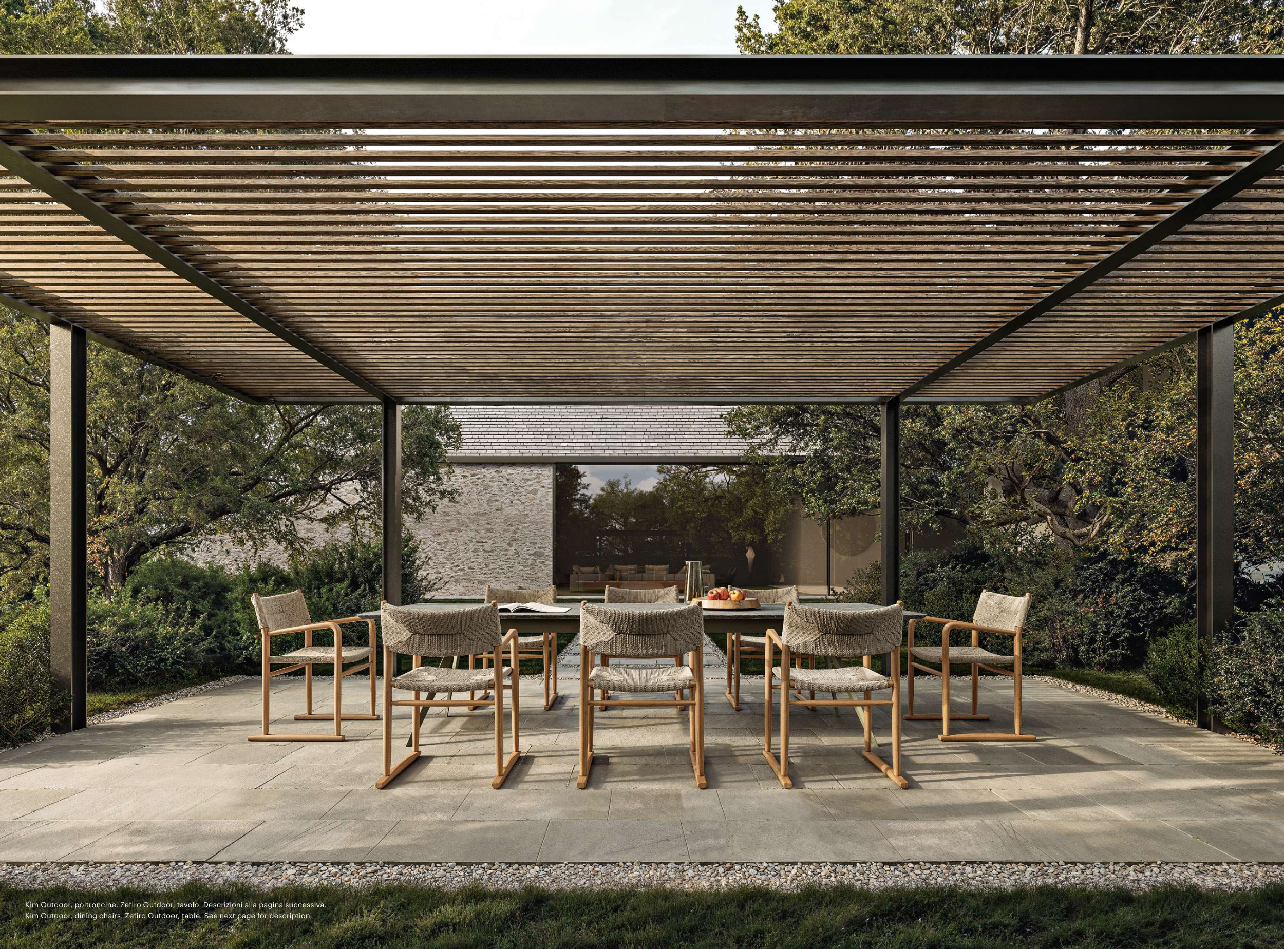 Kim Outdoor, dining chairs. Zefiro Outdoor, table. See next page for description.