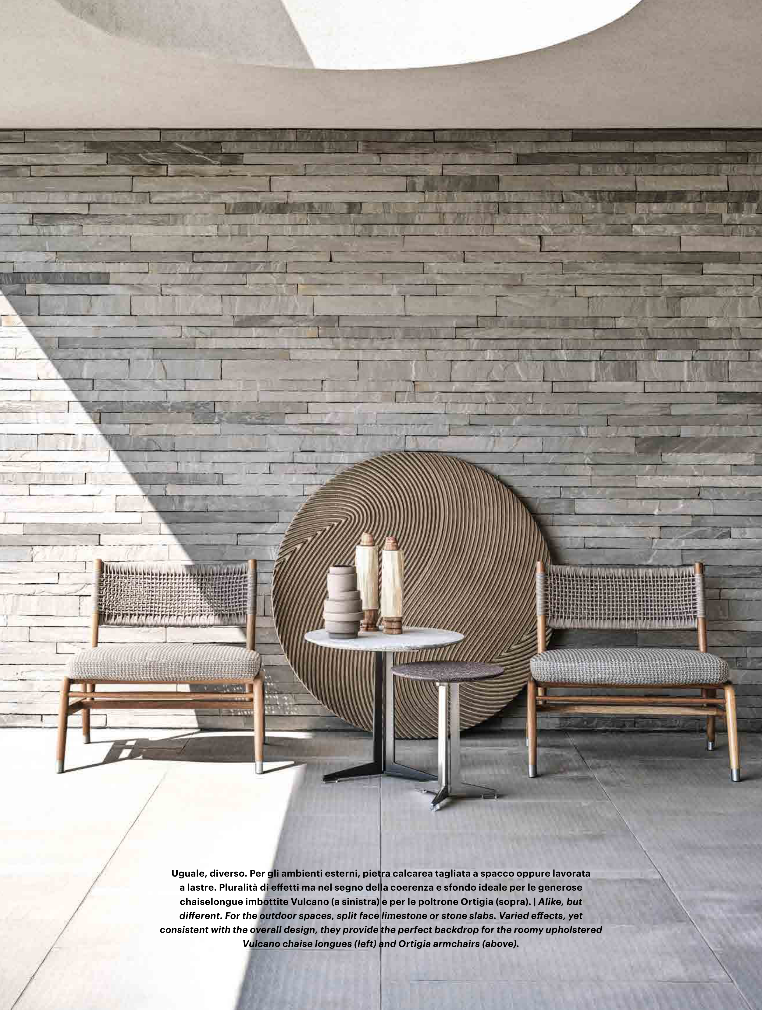 Uguale, diverso. Per gli ambienti esterni, pietra calcarea tagliata a spacco oppure lavorata