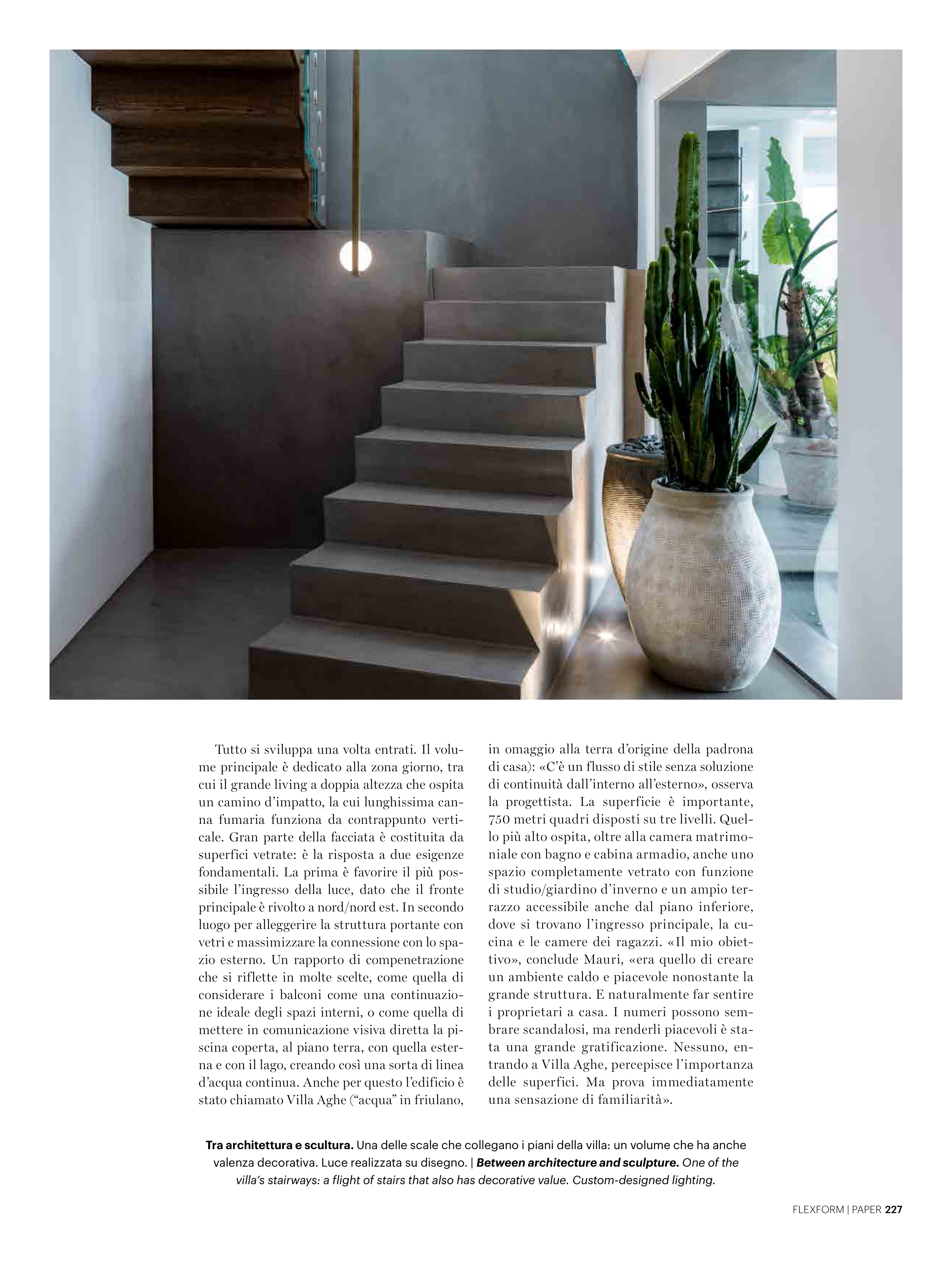 villa’s stairways: a flight of stairs that also has decorative value. Custom-designed lighting.