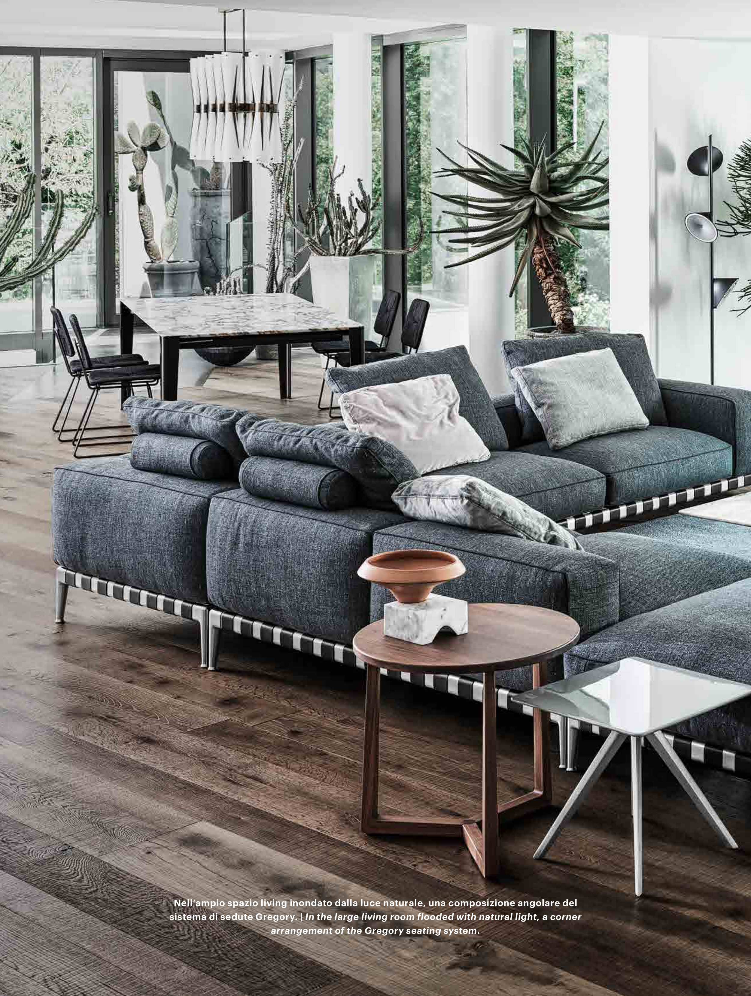 sistema di sedute Gregory. | In the large living room flooded with natural light, a corner