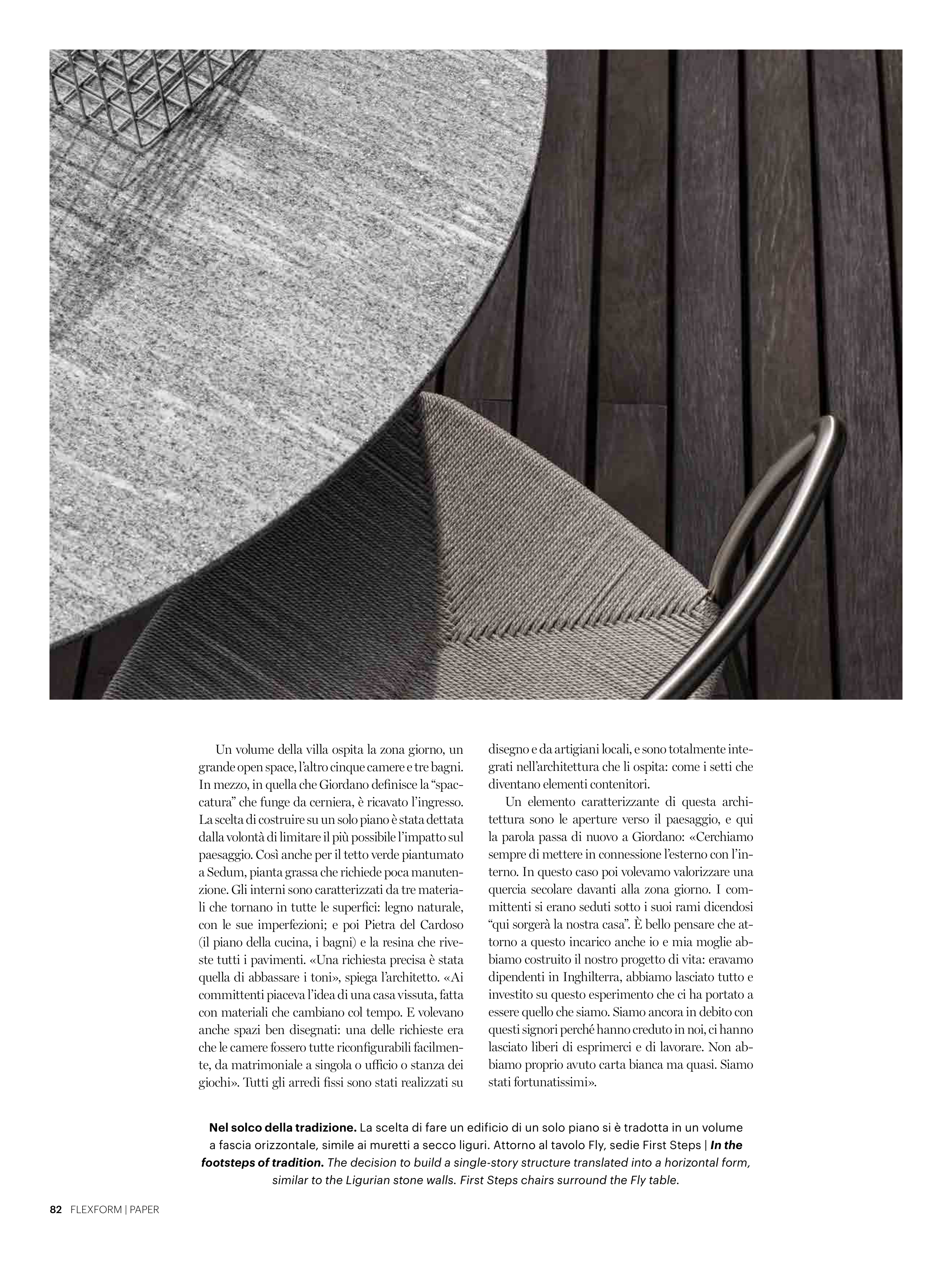 similar to the Ligurian stone walls. First Steps chairs surround the Fly table.
