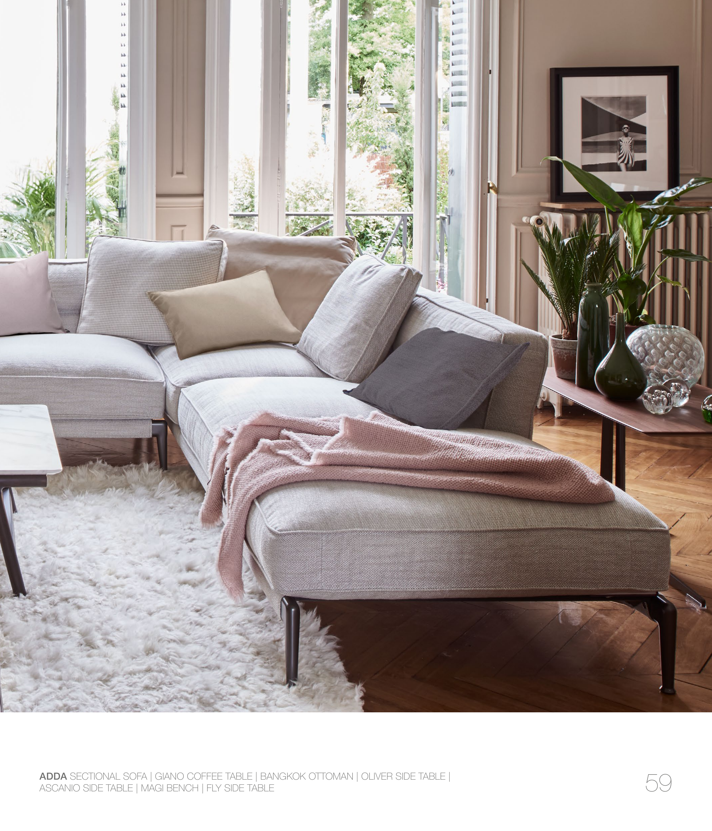 ADDA SECTIONAL SOFA | GIANO COFFEE TABLE | BANGKOK OTTOMAN | OLIVER SIDE TABLE |