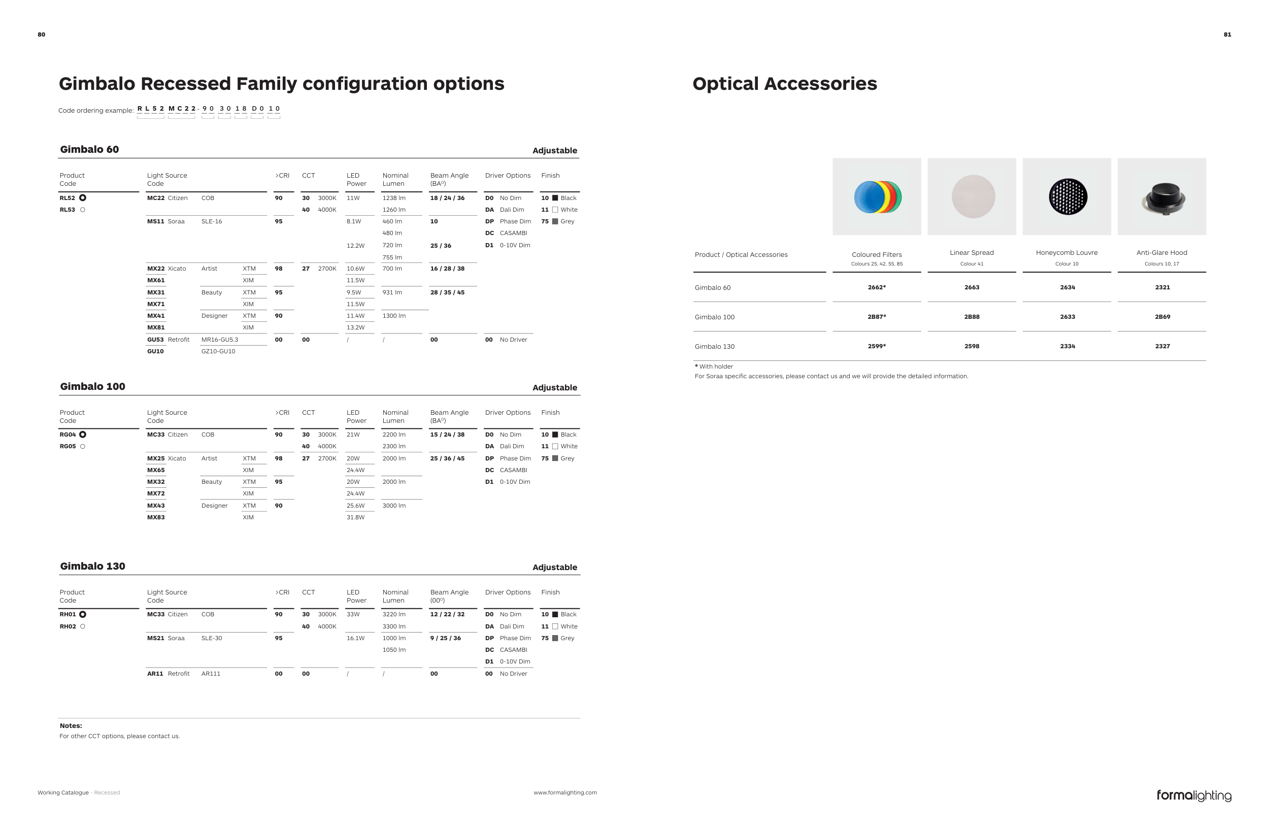 Gimbalo Recessed Family configuration options