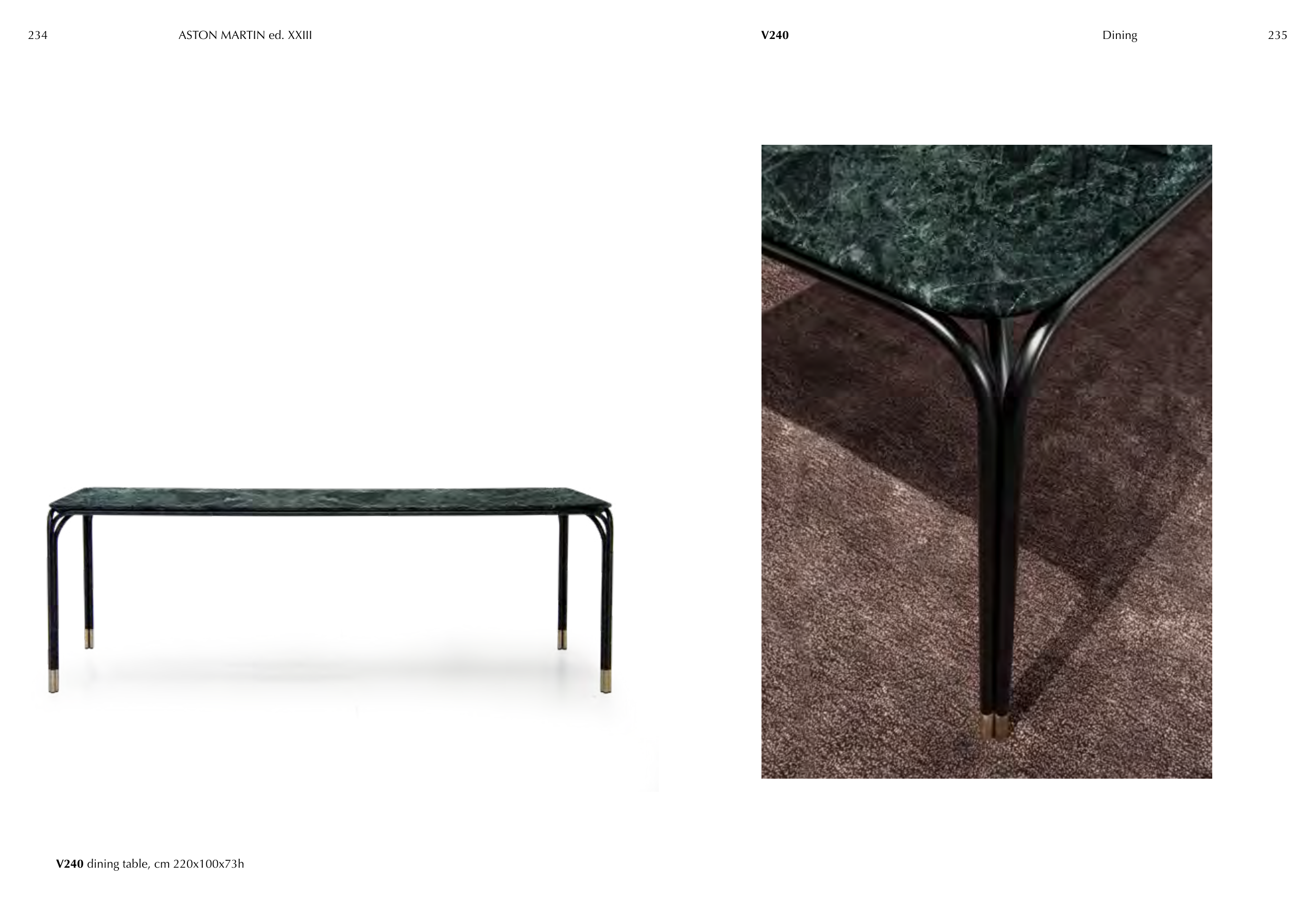V240 dining table, cm 220x100x73h