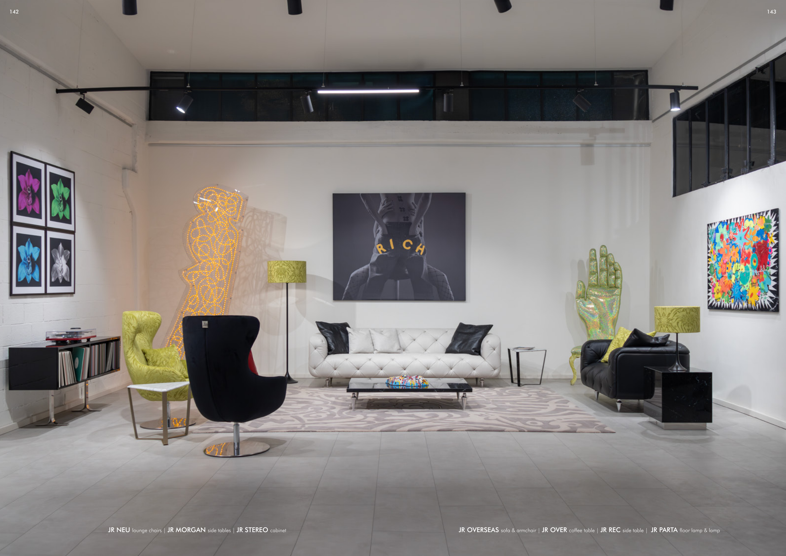 JR NEU lounge chairs | JR MORGAN side tables | JR STEREO cabinet