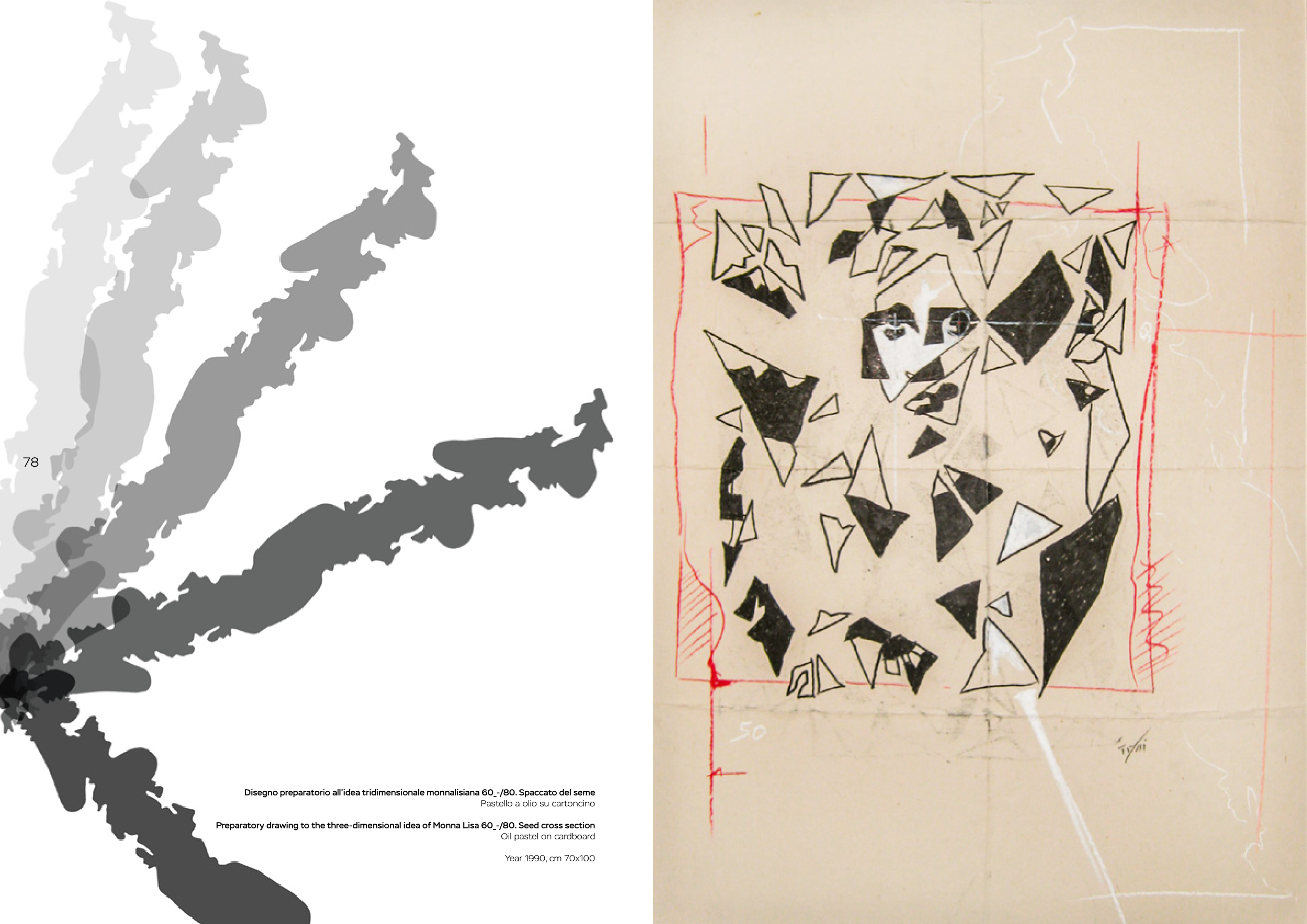 Disegno preparatorio all’idea tridimensionale monnalisiana 60_-/80. Spaccato del seme