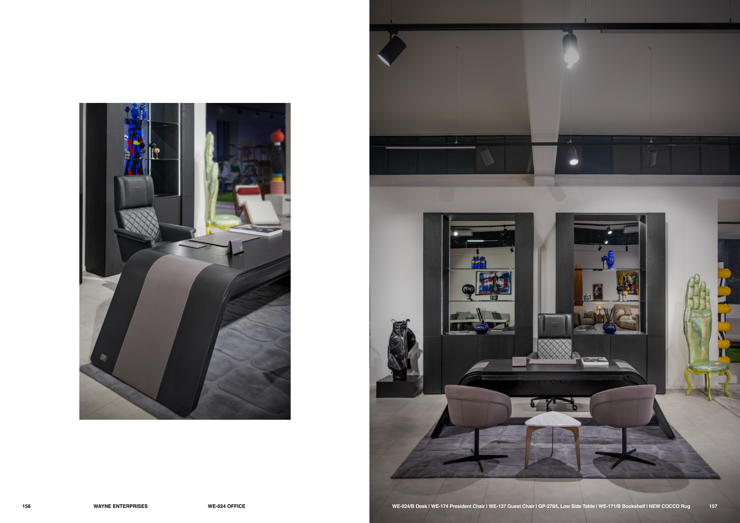 WE-024/B Desk | WE-174 President Chair | WE-137 Guest Chair | GP-278/L Low Side Table | WE-171/B Bookshelf | NEW COCCO Rug