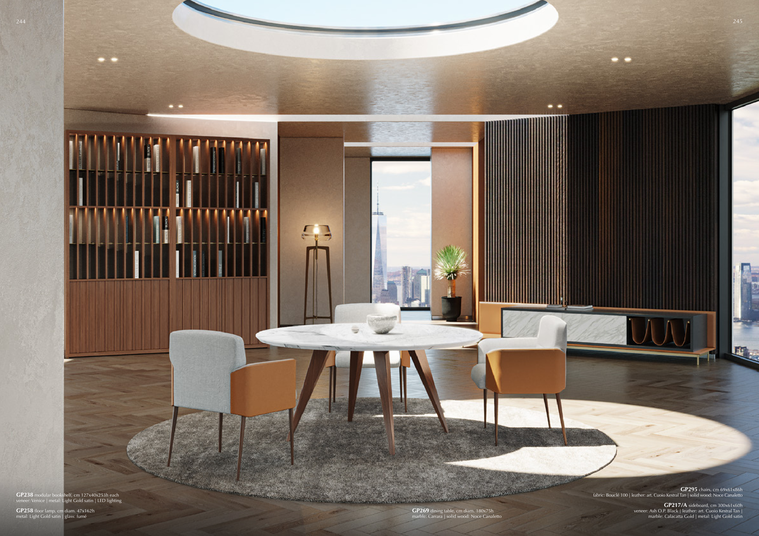 veneer: Venice | metal: Light Gold satin | LED lighting