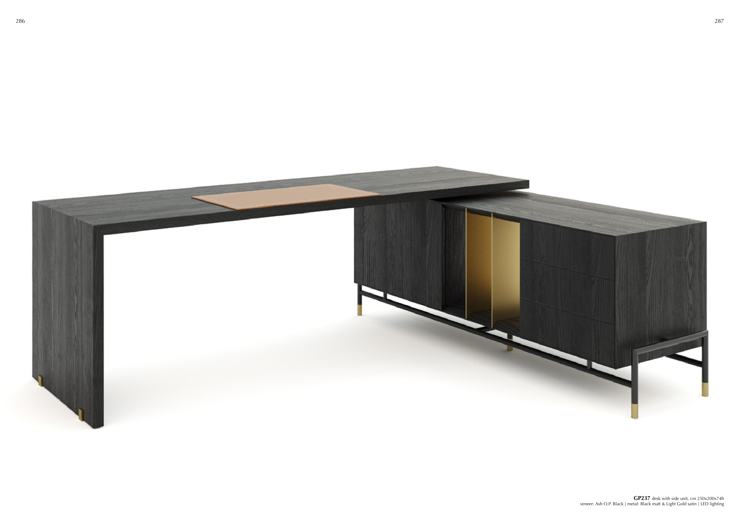 veneer: Ash O.P. Black | metal: Black matt & Light Gold satin | LED lighting