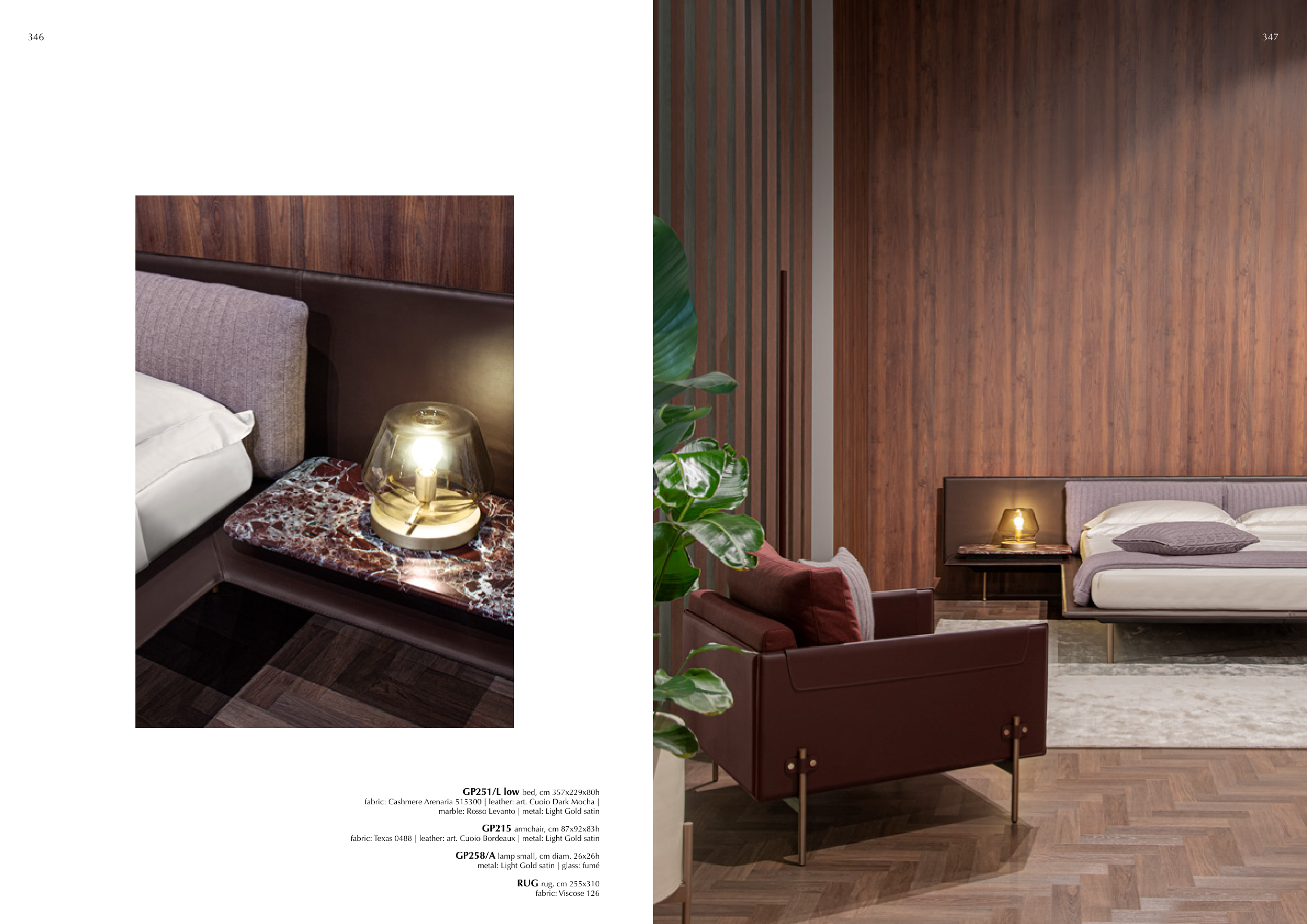 fabric: Texas 0488 | leather: art. Cuoio Bordeaux | metal: Light Gold satin