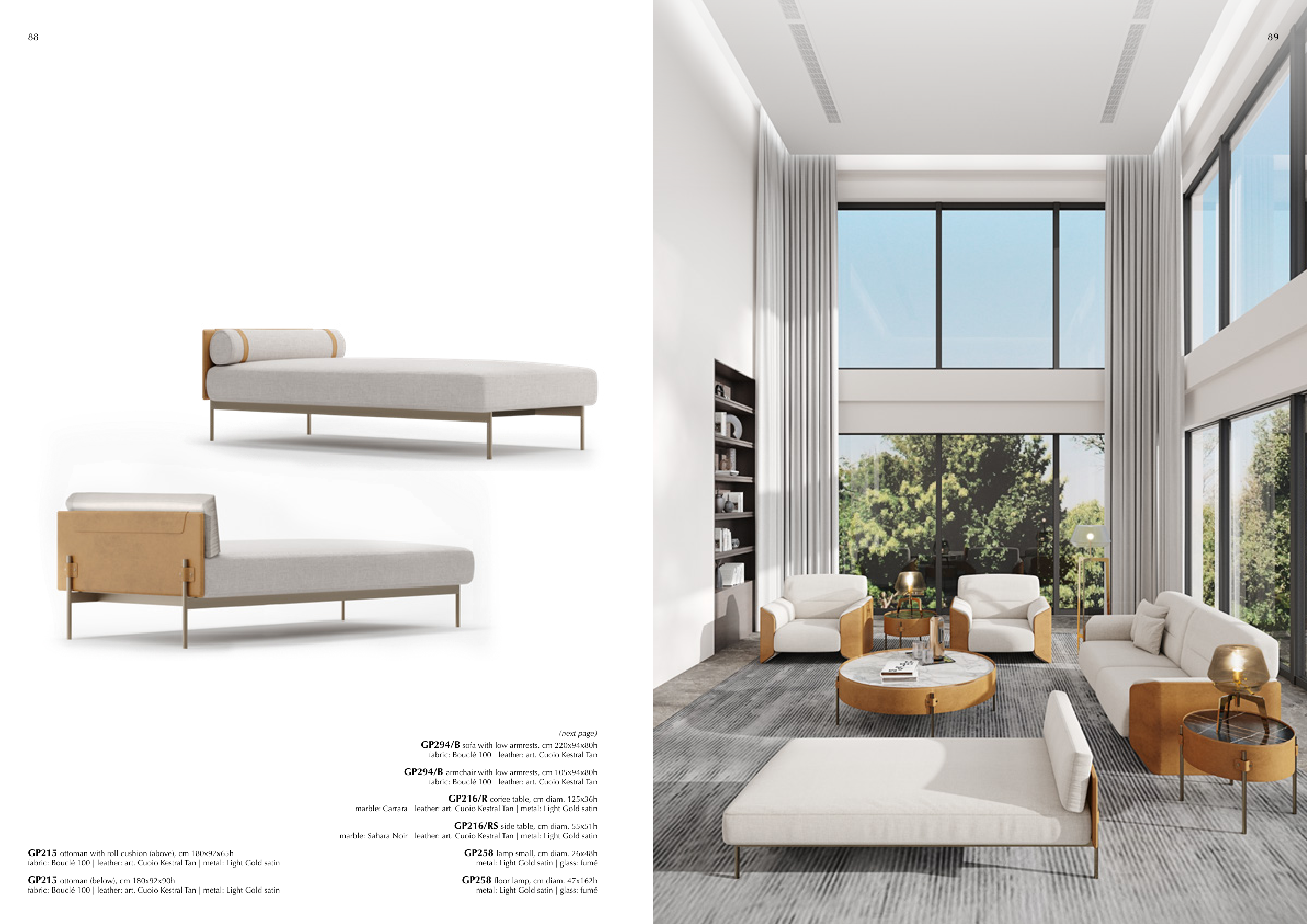 GP215 ottoman (below), cm 180x92x90h