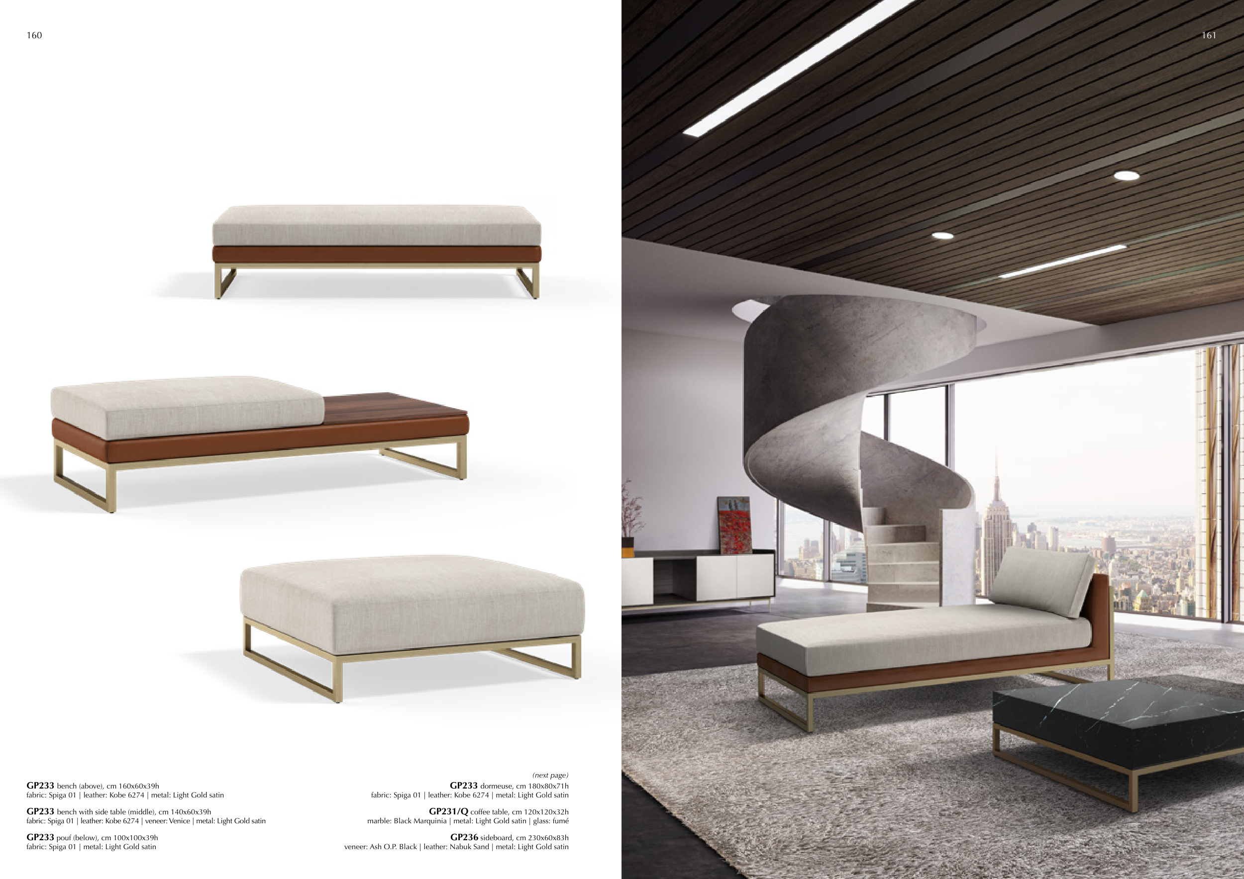 fabric: Spiga 01 | leather: Kobe 6274 | veneer: Venice | metal: Light Gold satin