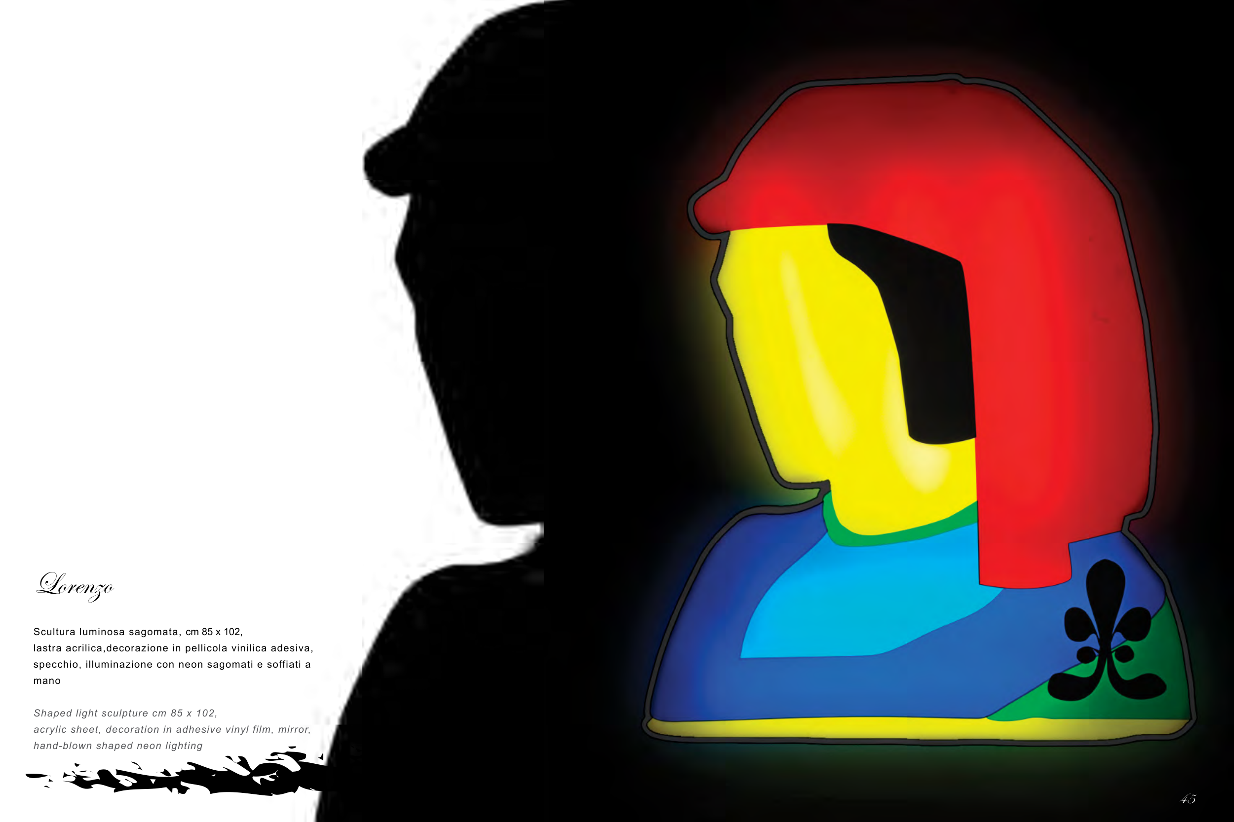 Scultura luminosa sagomata, cm 85 x 102,