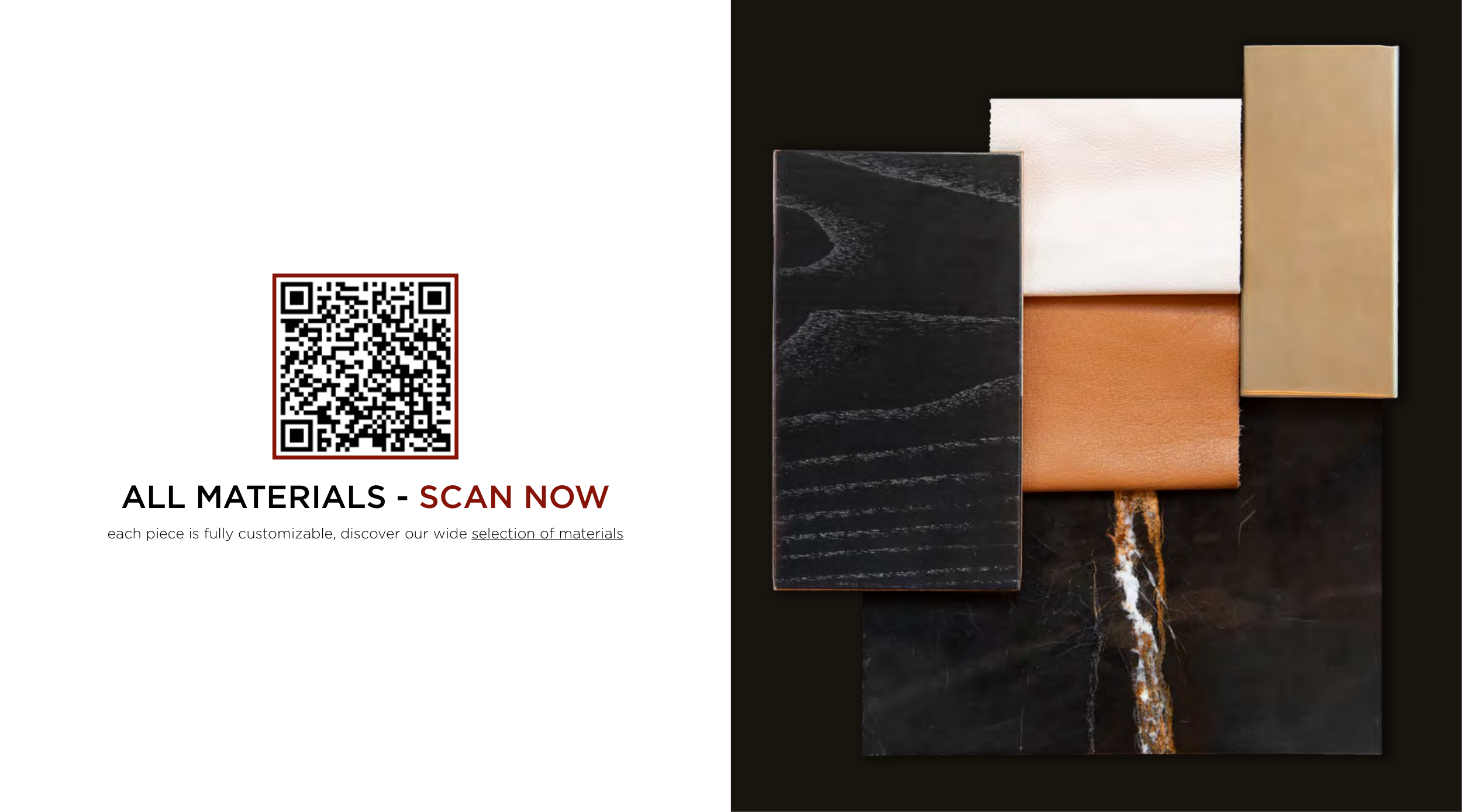 each piece is fully customizable, discover our wide selection of materials