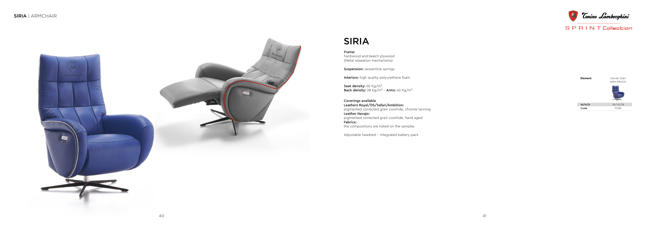 Seat density: 40 Kg/m³ HR