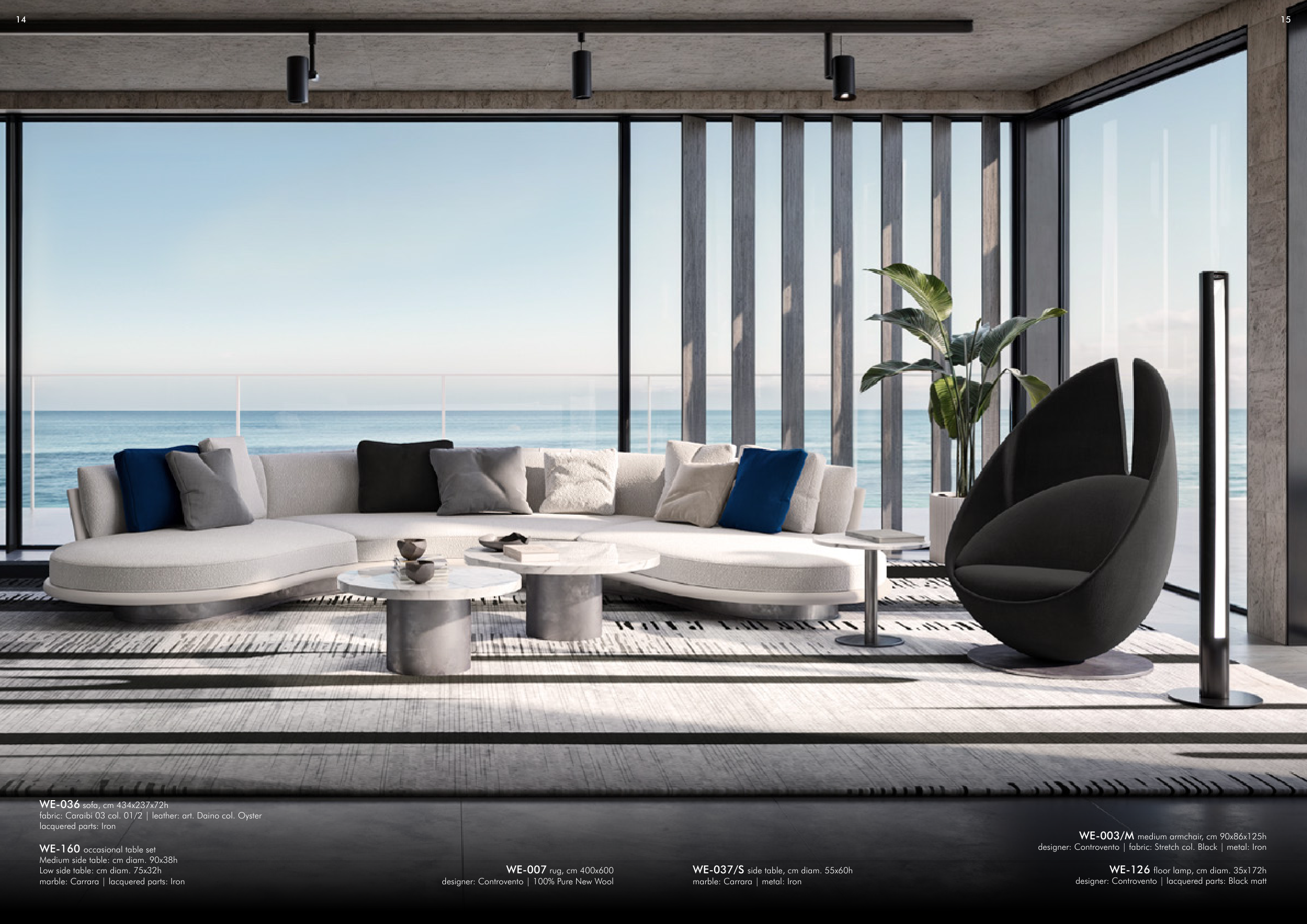 WE-036 sofa, cm 434x237x72h