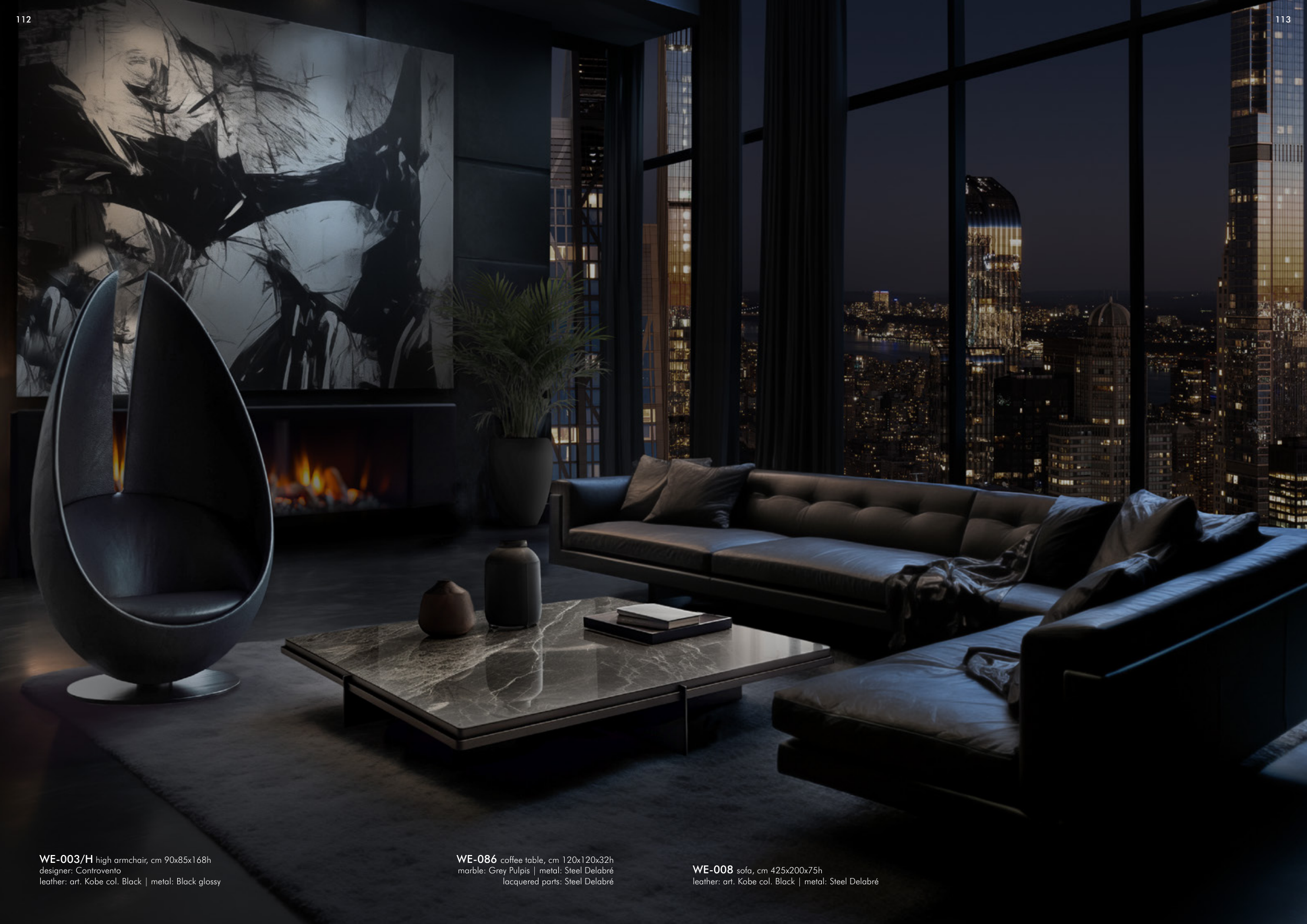 leather: art. Kobe col. Black | metal: Steel Delabré