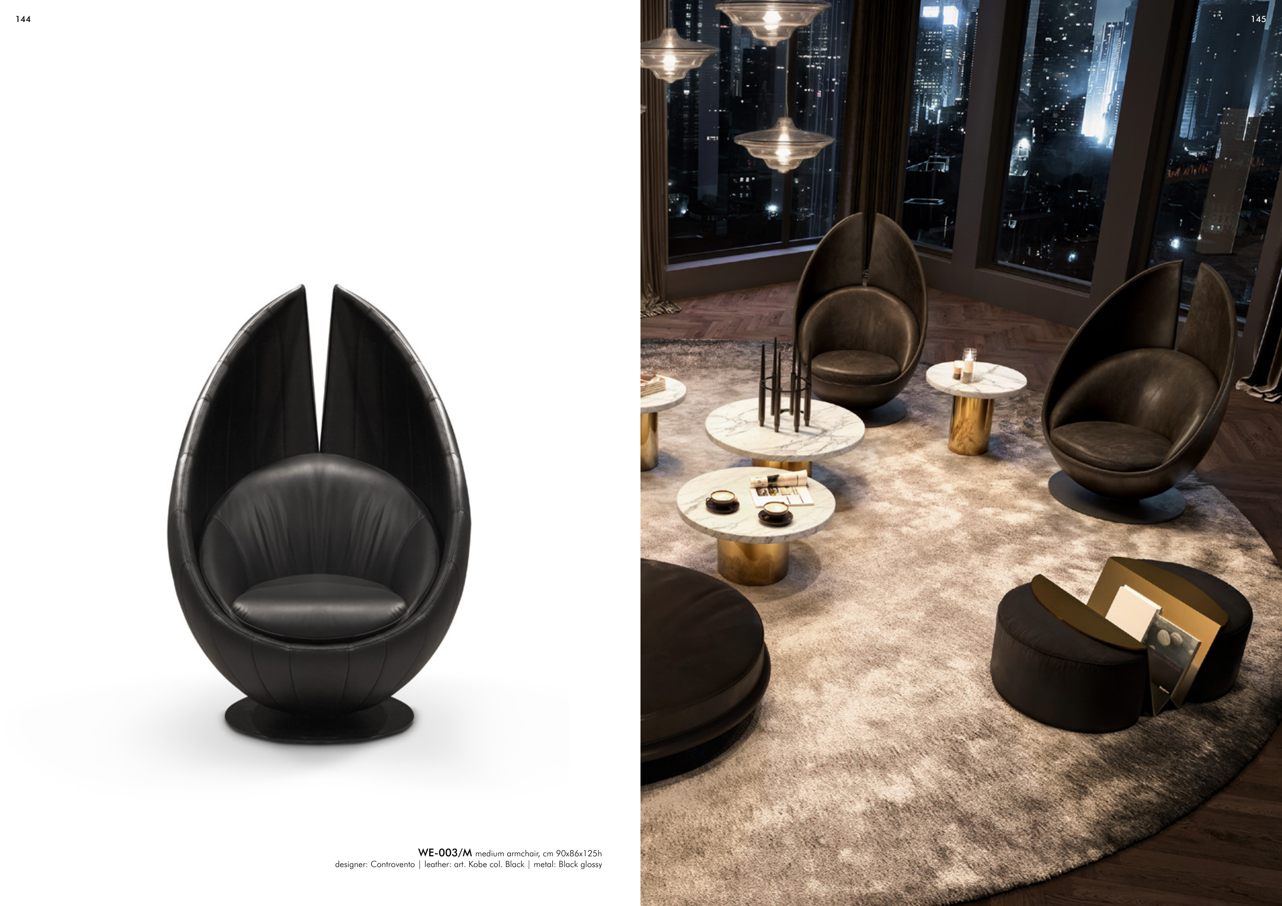 designer: Controvento | leather: art. Kobe col. Black | metal: Black glossy
