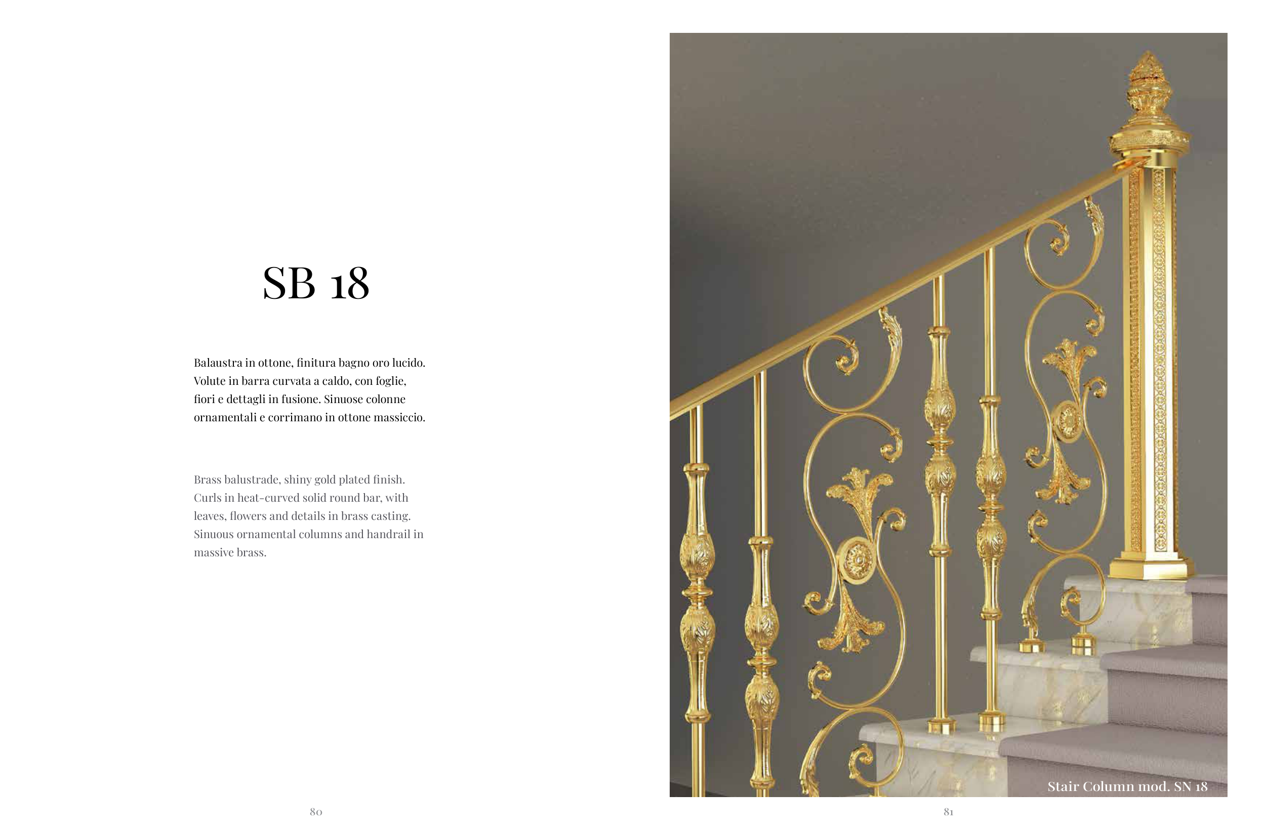 ornamentali e corrimano in ottone massiccio.
