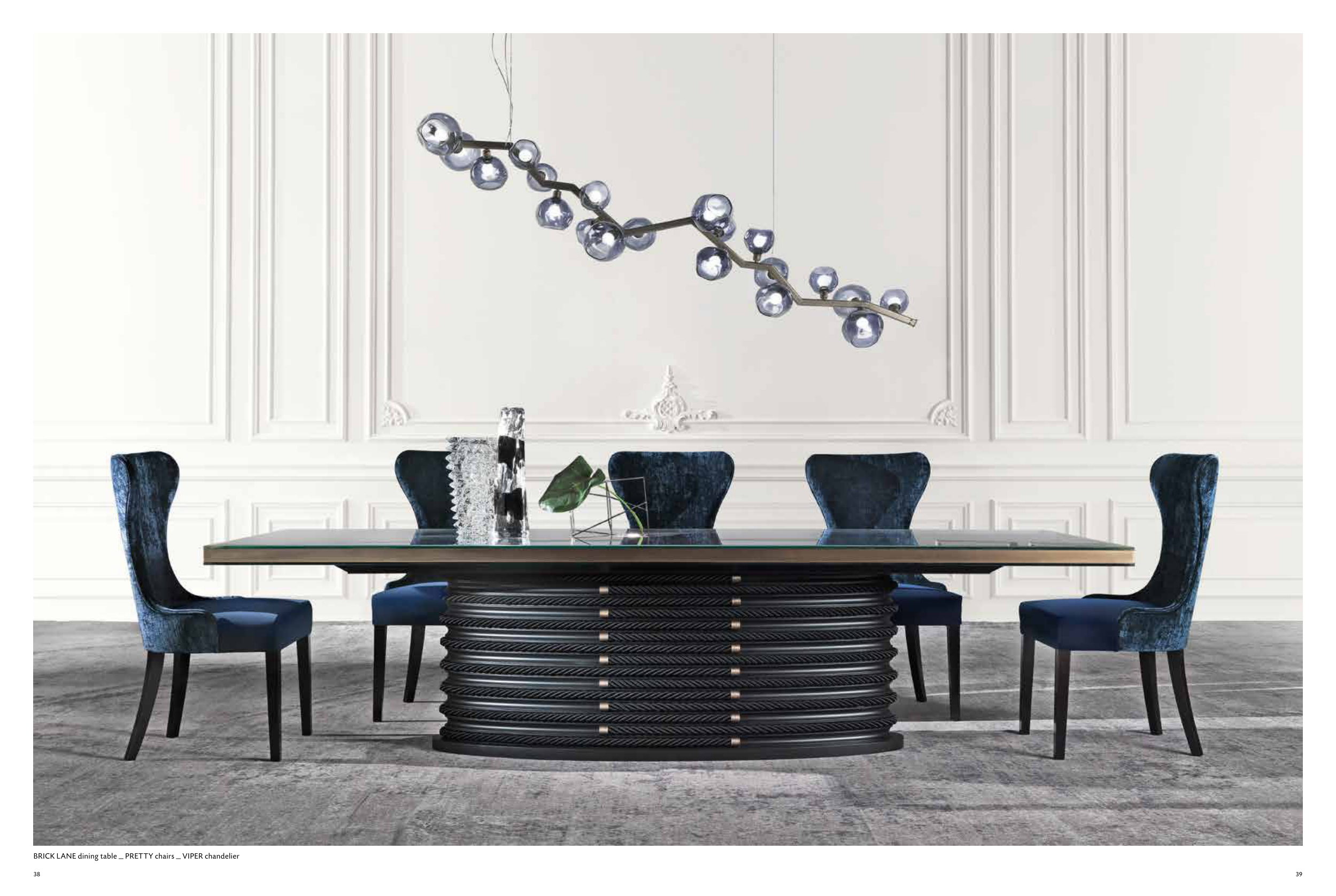 BRICK LANE dining table _ PRETTY chairs _ VIPER chandelier