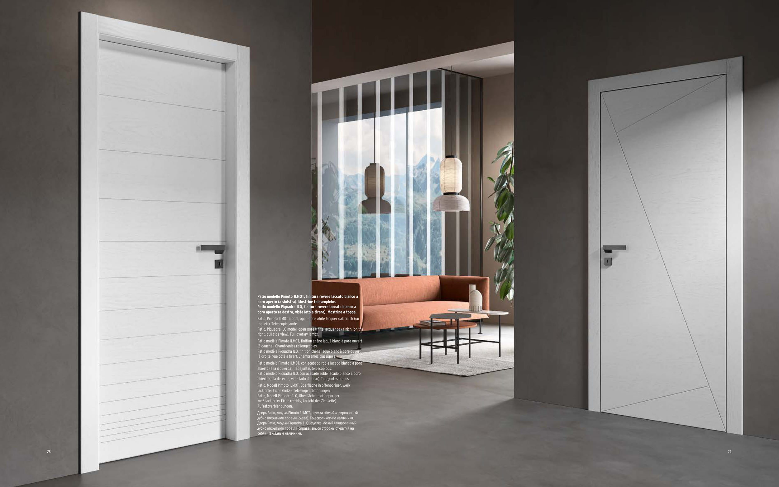 Patio, Piquadra 1LQ model, open-pore white lacquer oak finish (on the
