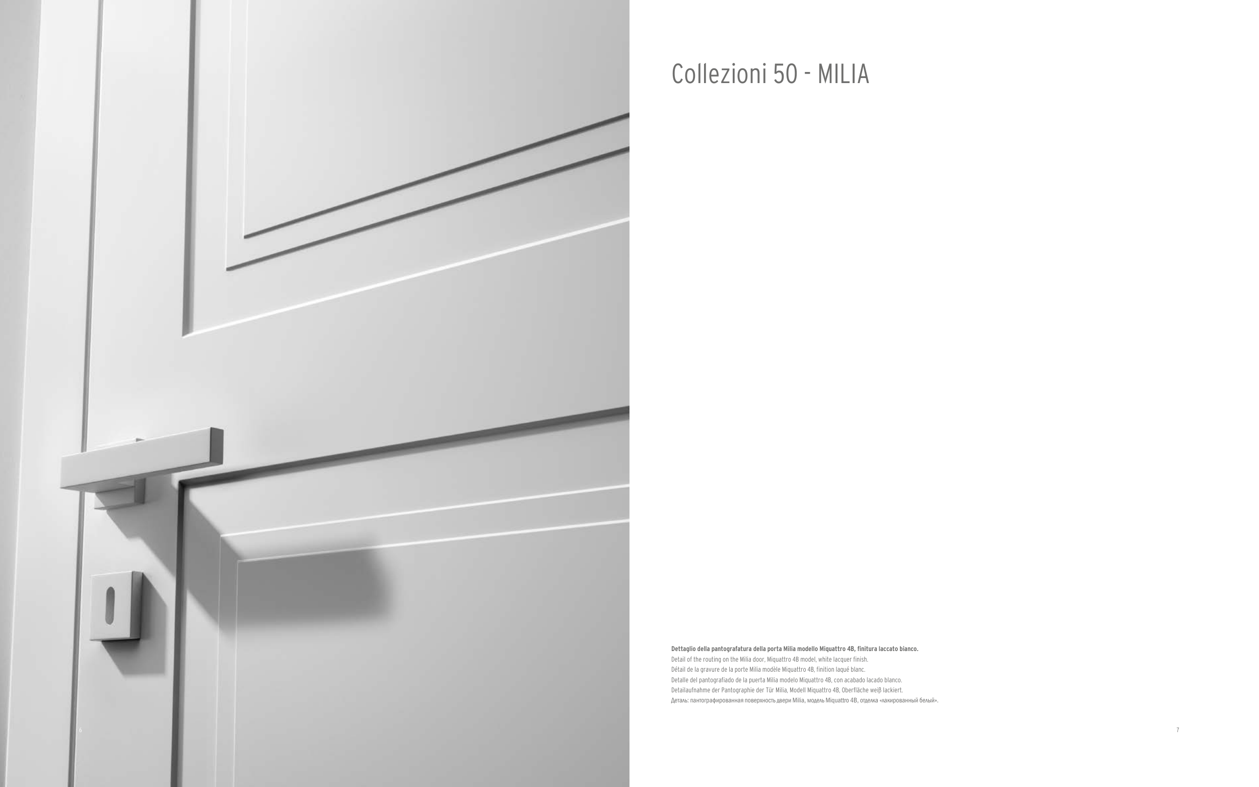 Dettaglio della pantografatura della porta Milia modello Miquattro 4B, finitura laccato bianco.
