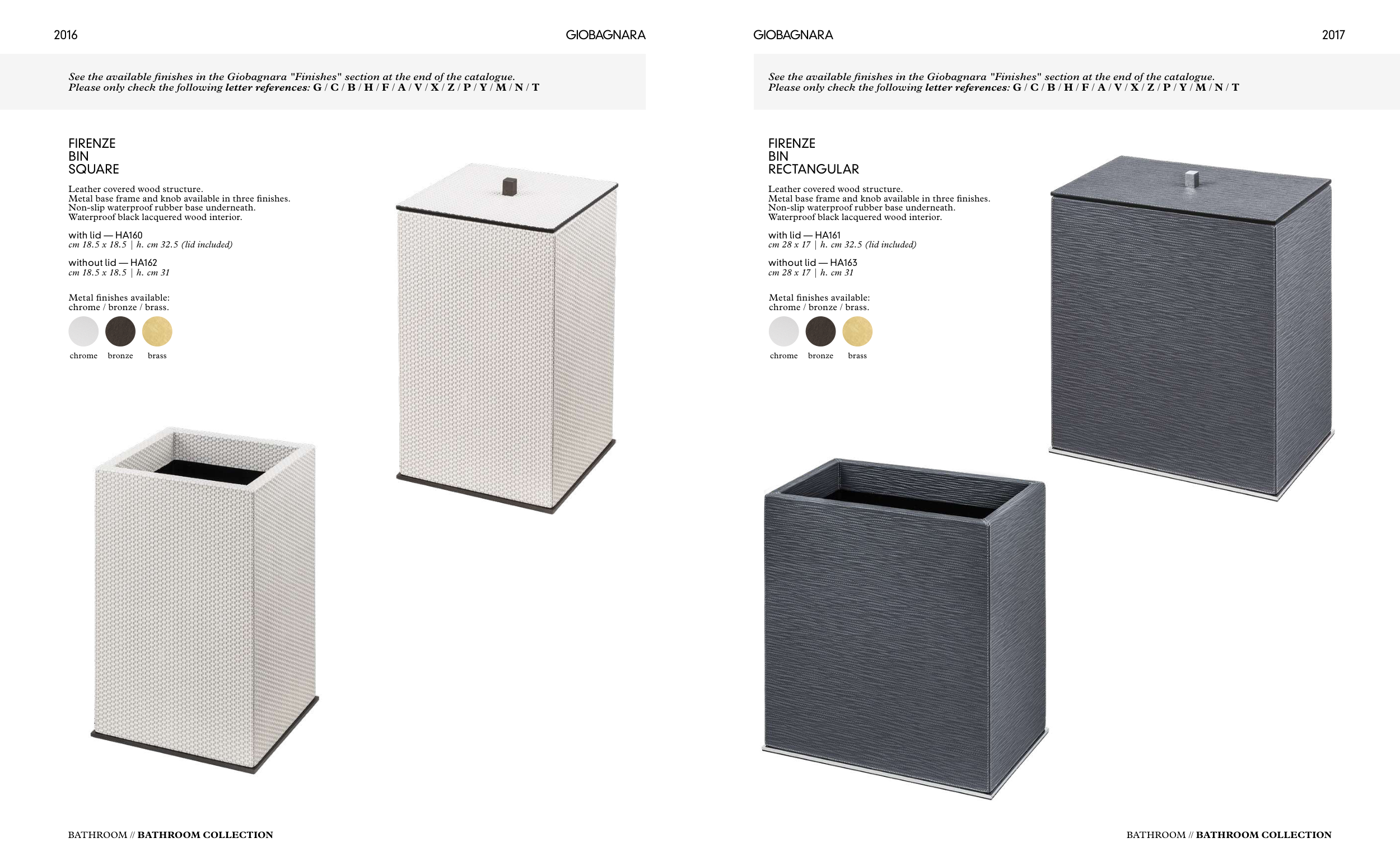 See the available finishes in the Giobagnara "Finishes" section at the end of the catalogue.