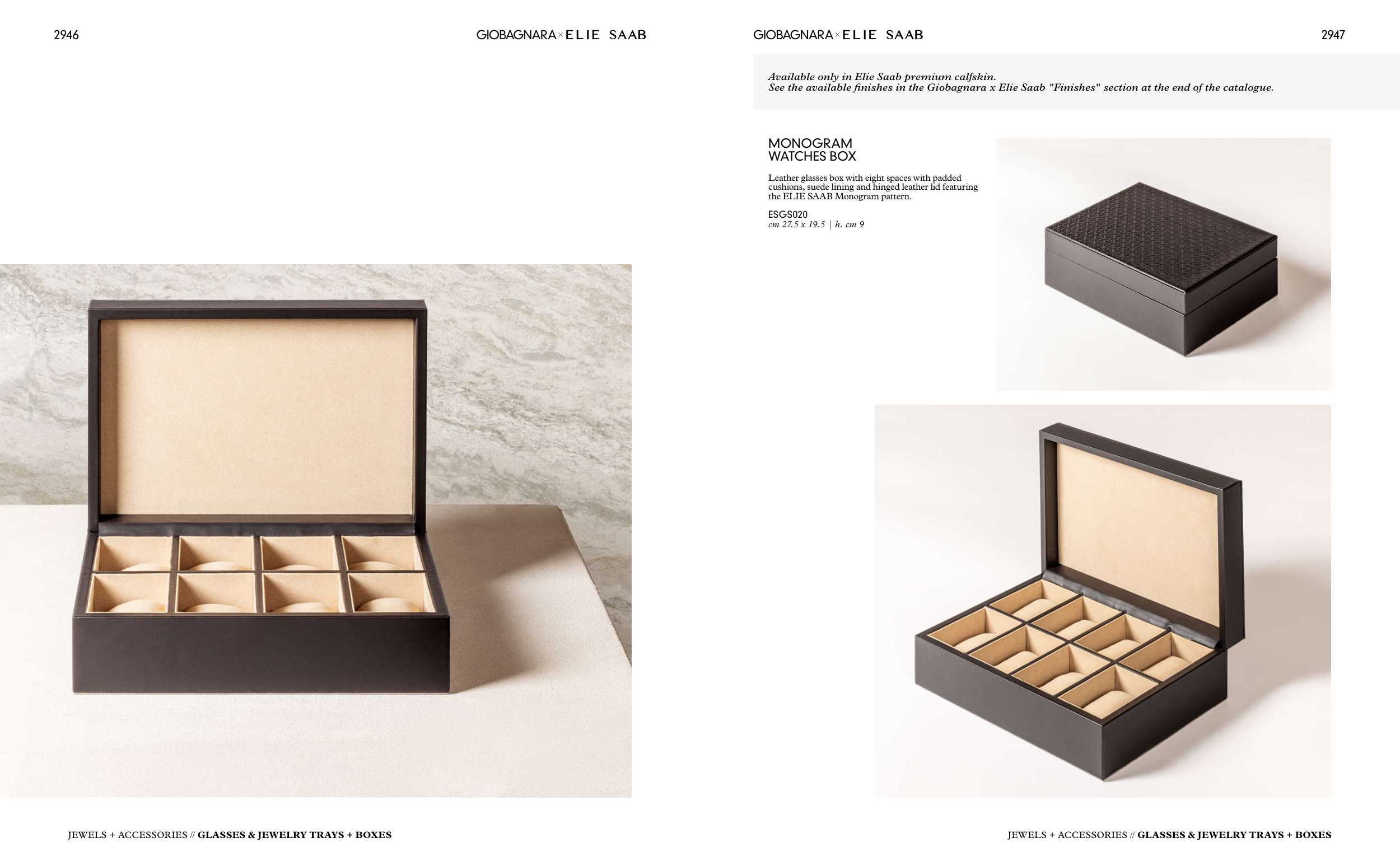 See the available finishes in the Giobagnara x Elie Saab "Finishes" section at the end of the catalogue.