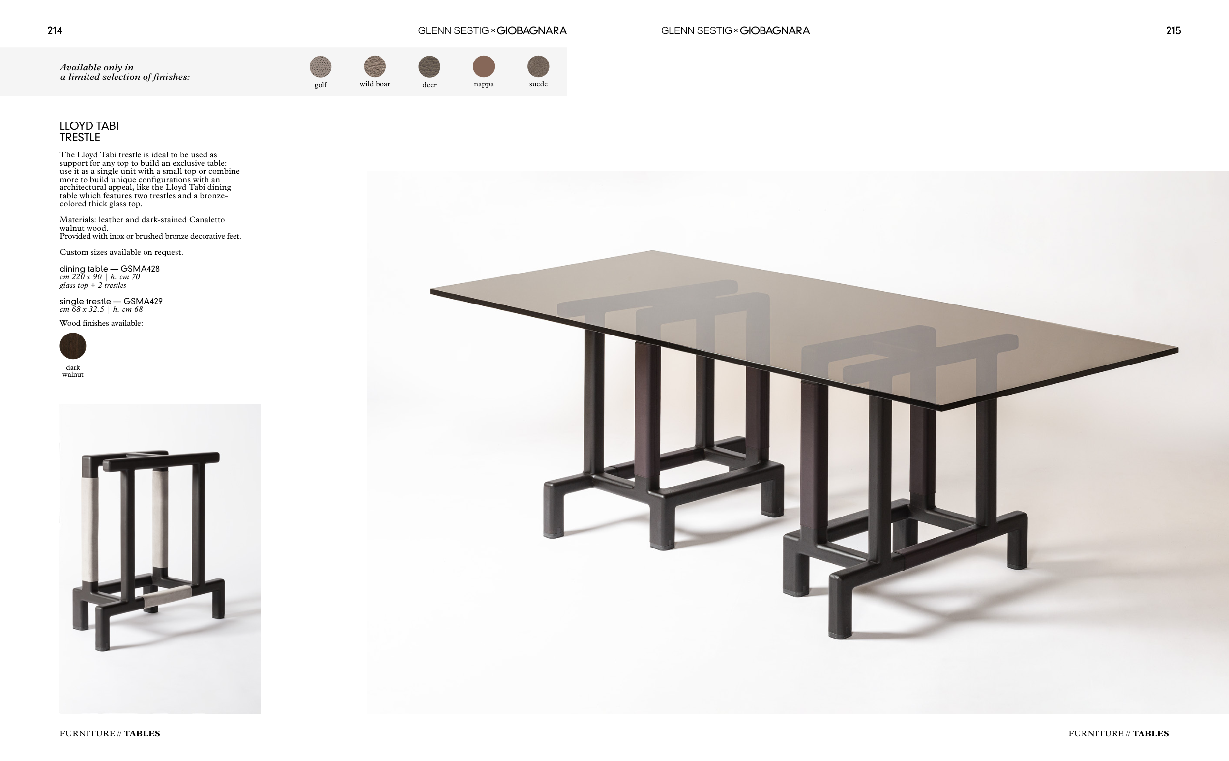 Materials: leather and dark-stained Canaletto