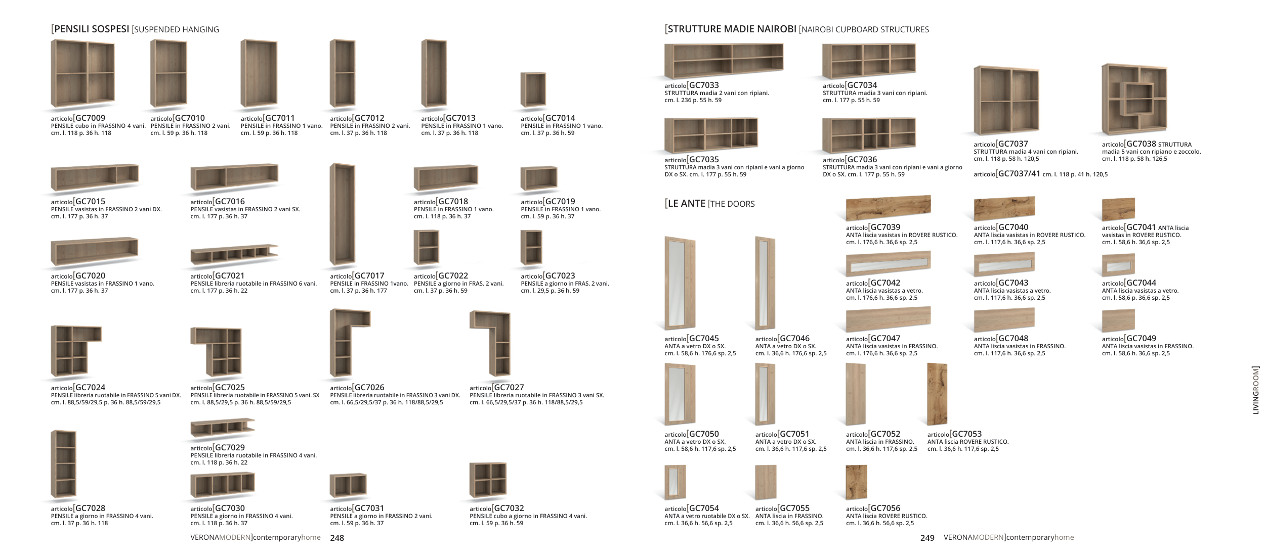 PENSILE vasistas in FRASSINO 2 vani DX.