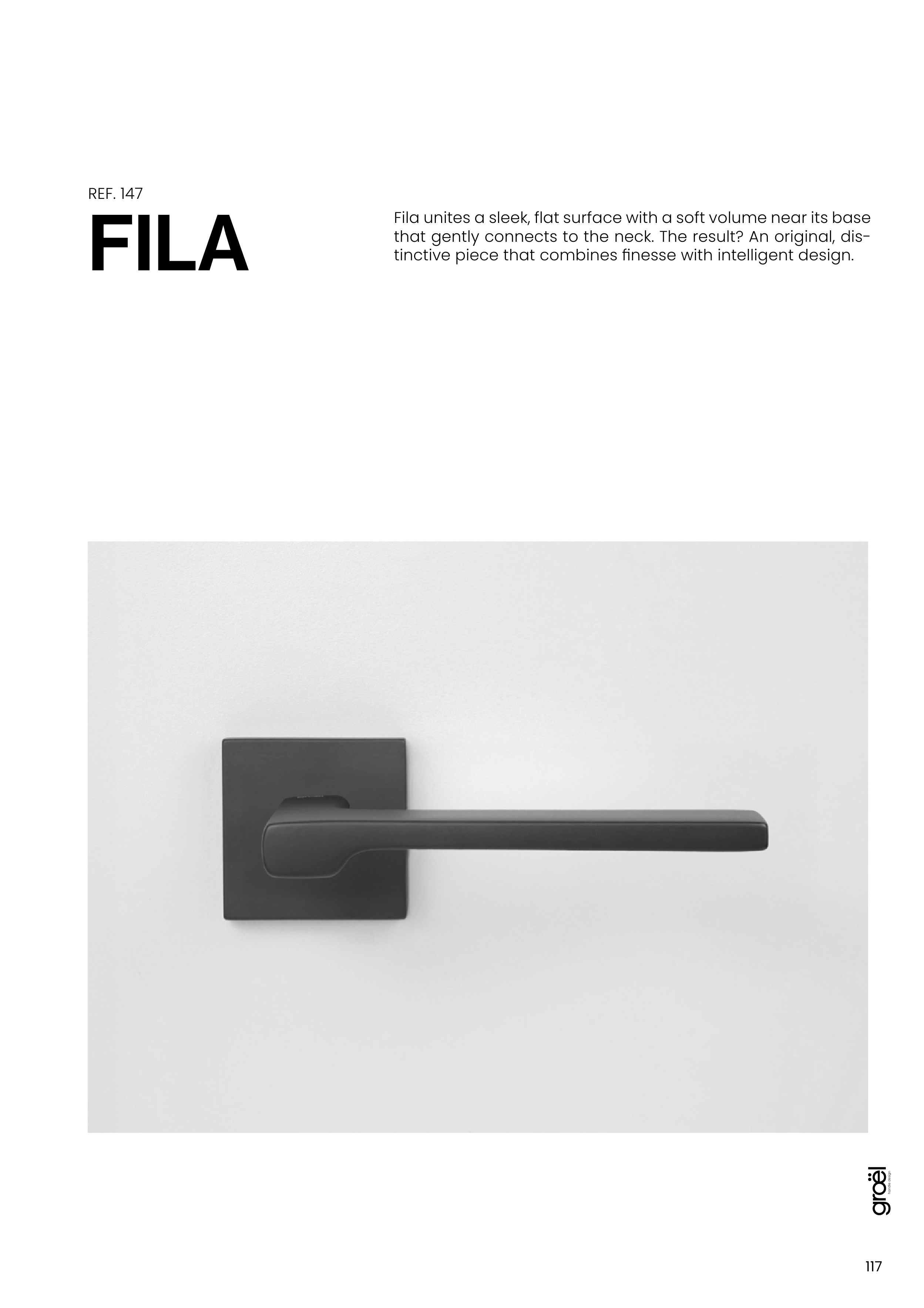 Fila unites a sleek, flat surface with a soft volume near its base