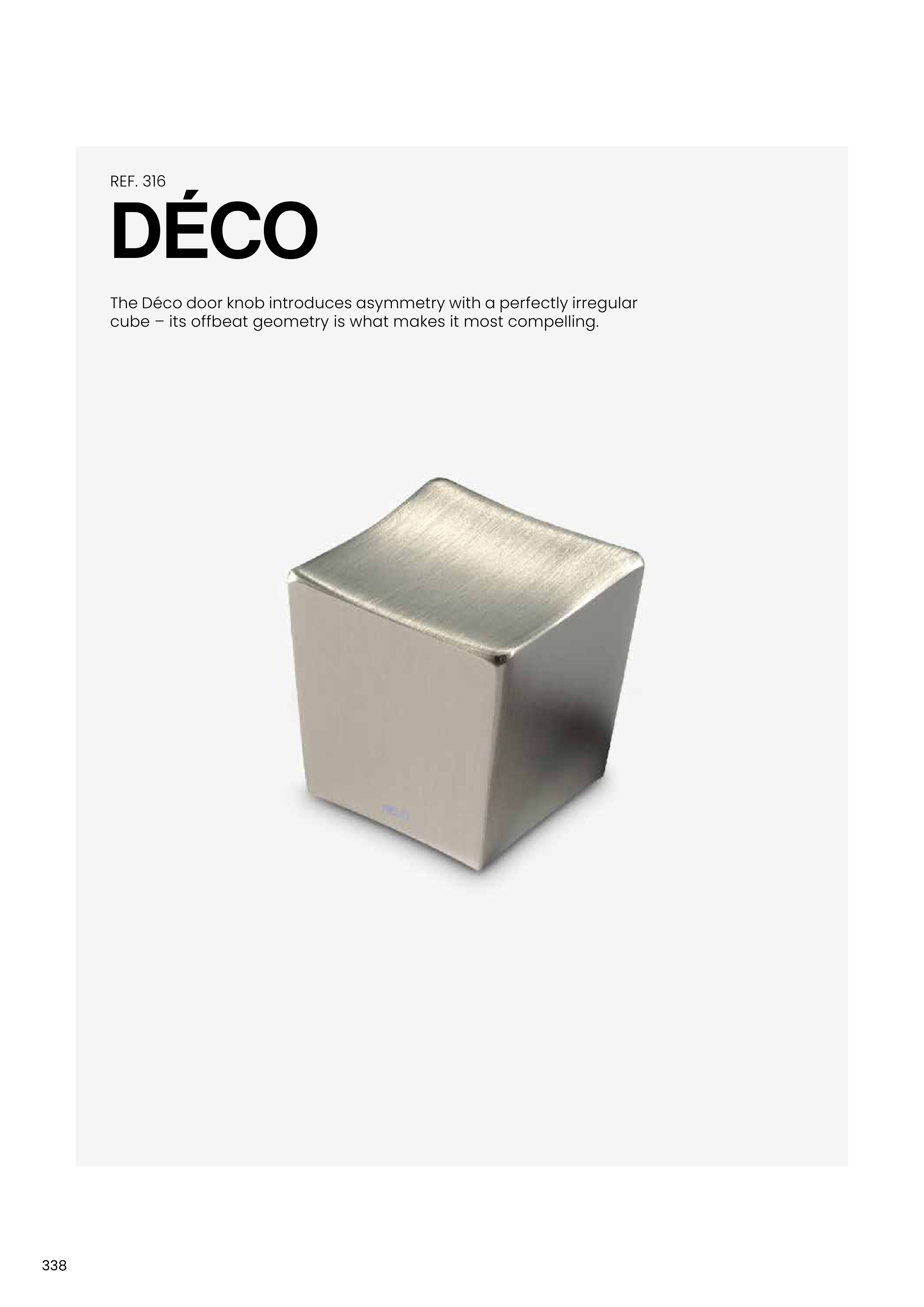 The Déco door knob introduces asymmetry with a perfectly irregular