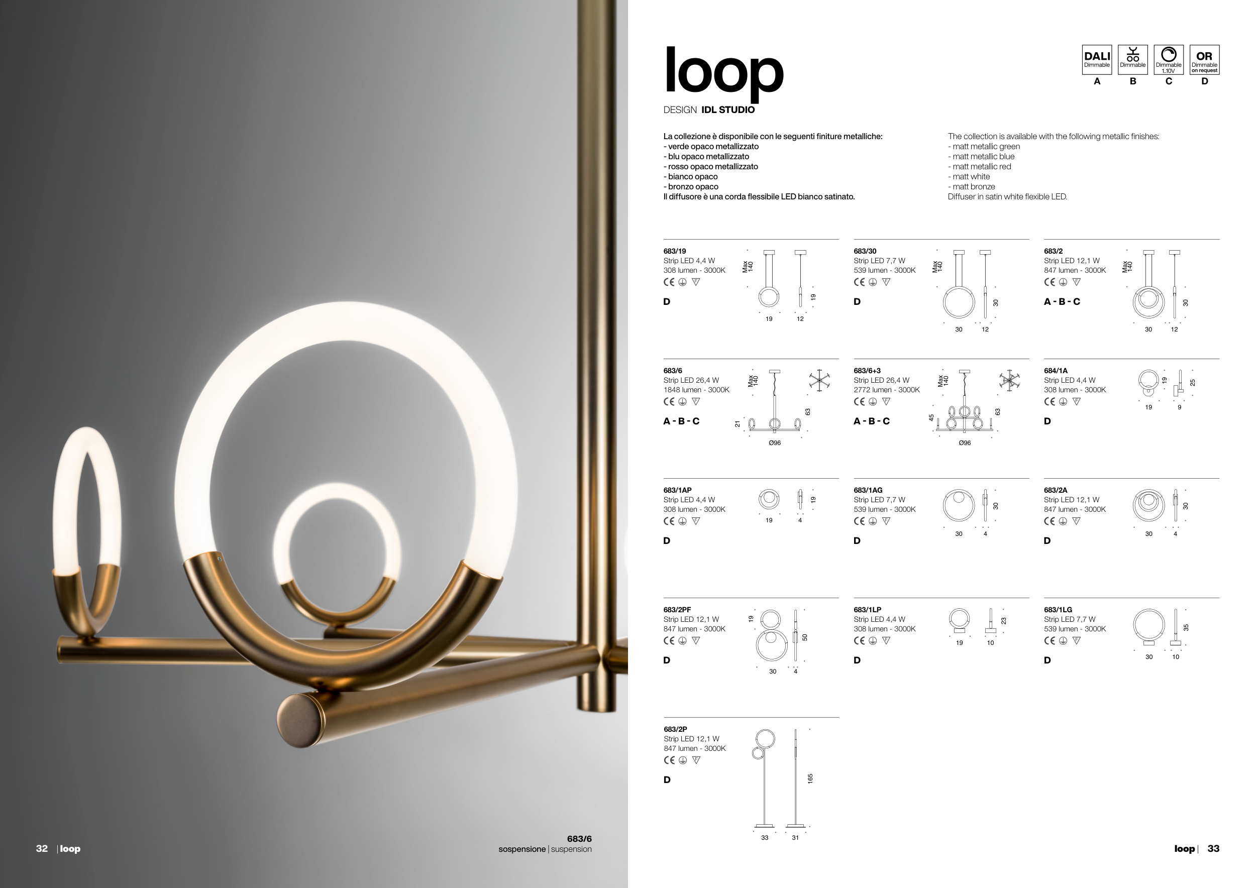 La collezione è disponibile con le seguenti finiture metalliche: