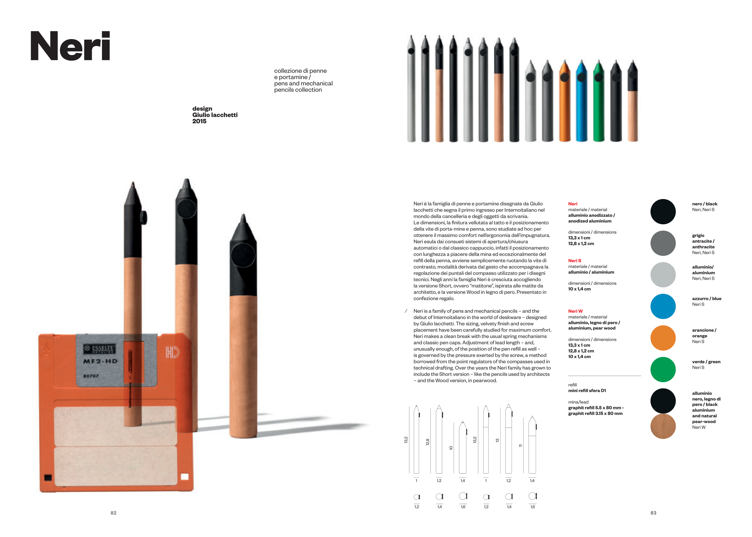 Neri è la famiglia di penne e portamine disegnate da Giulio