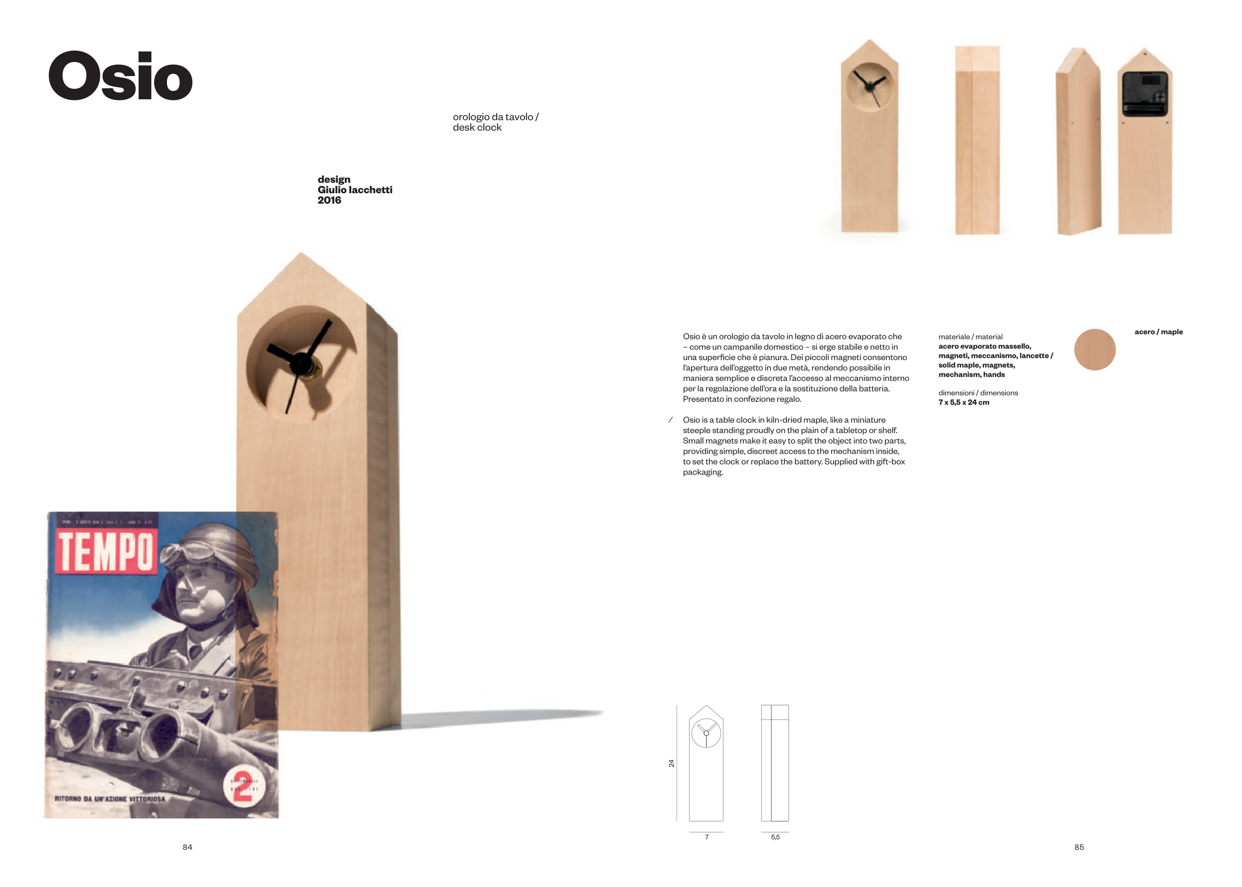 Osio is a table clock in kiln-dried maple, like a miniature