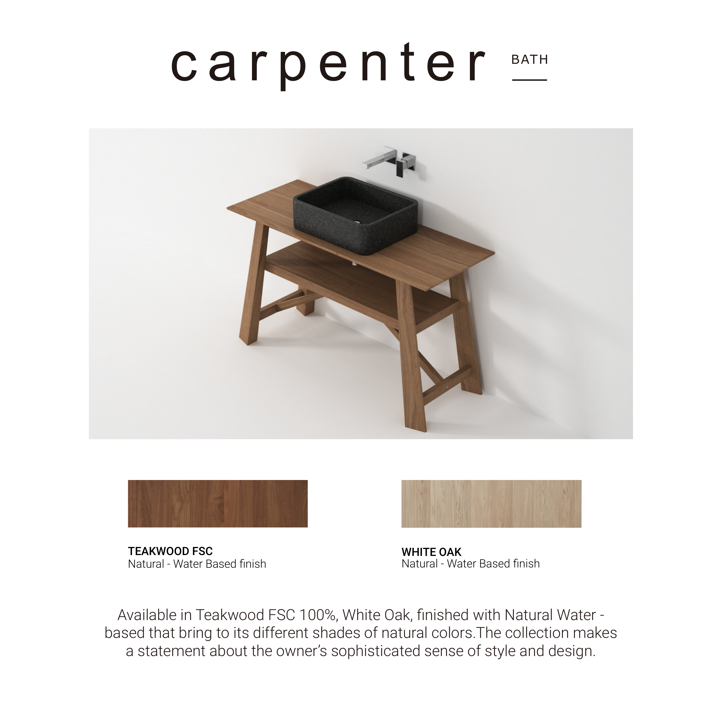 Available in Teakwood FSC 100%, White Oak, finished with Natural Water -