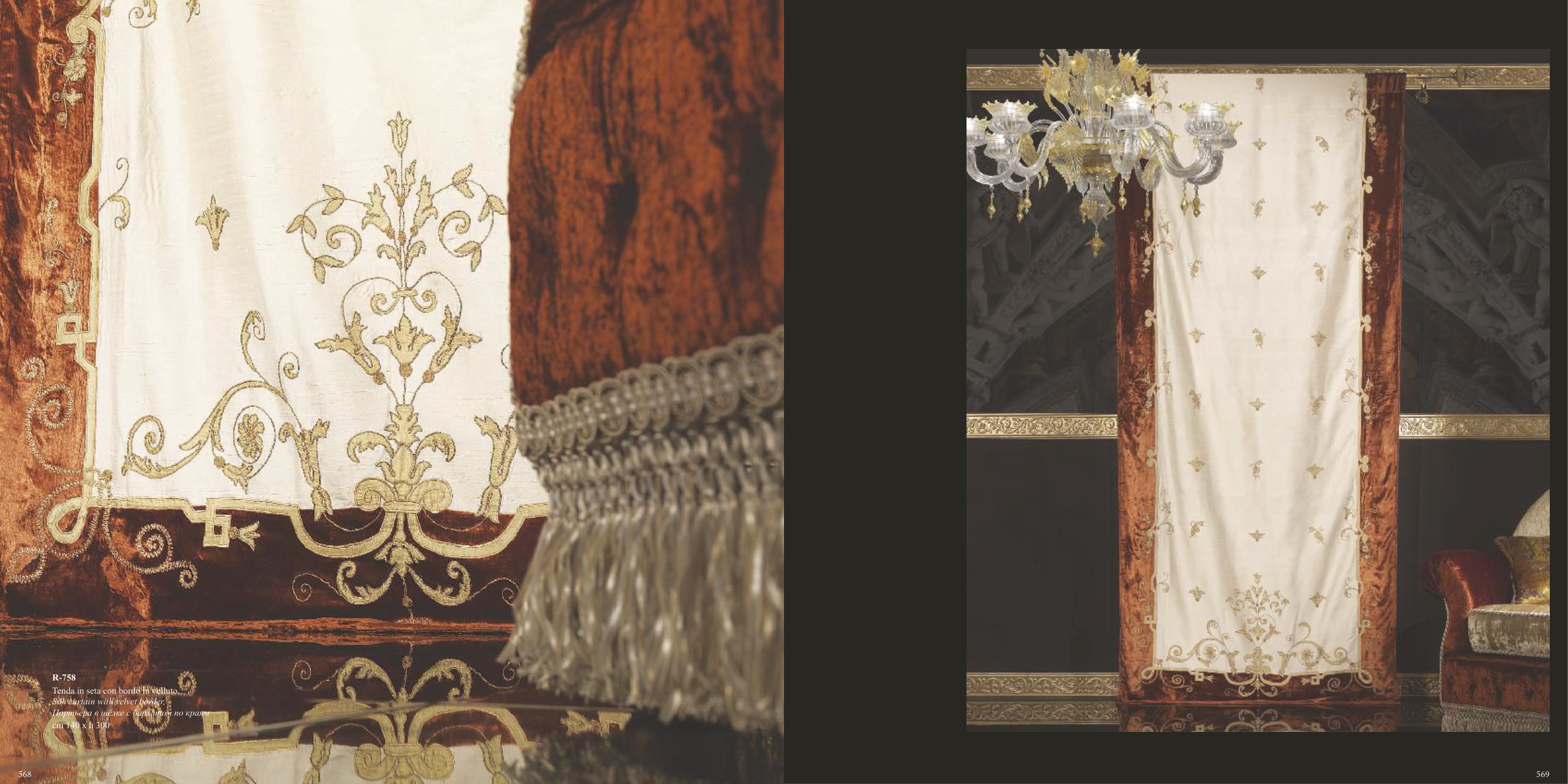 Silk curtain with velvet border,