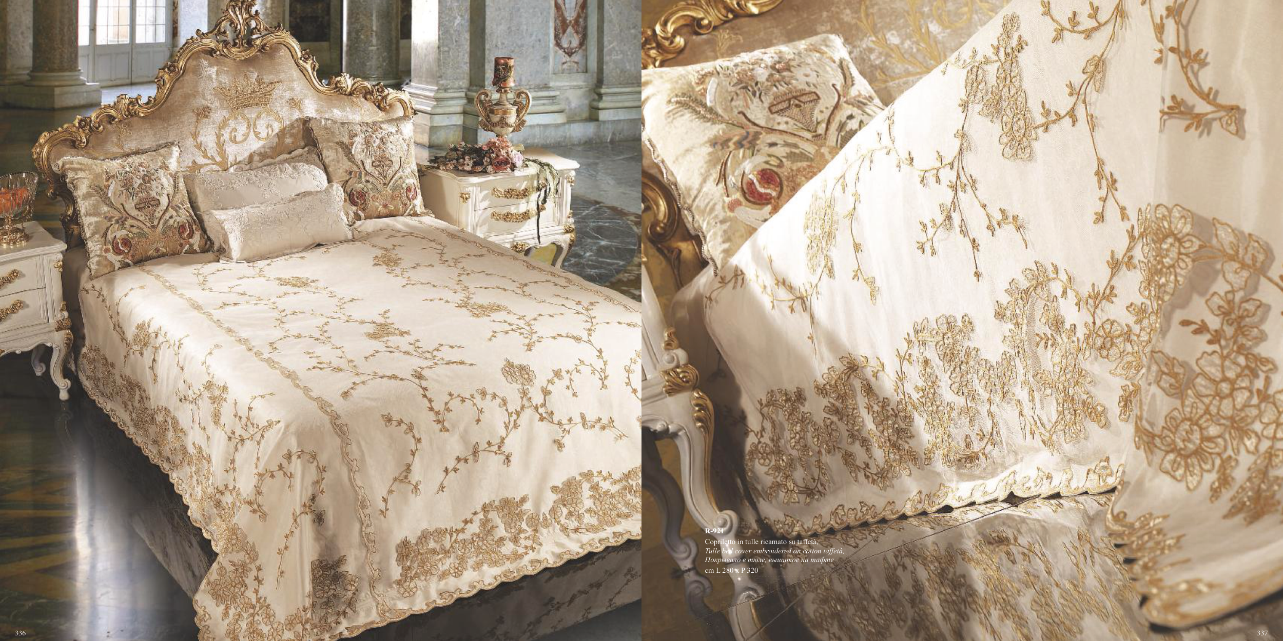 Tulle bed cover embroidered on cotton taffetà,