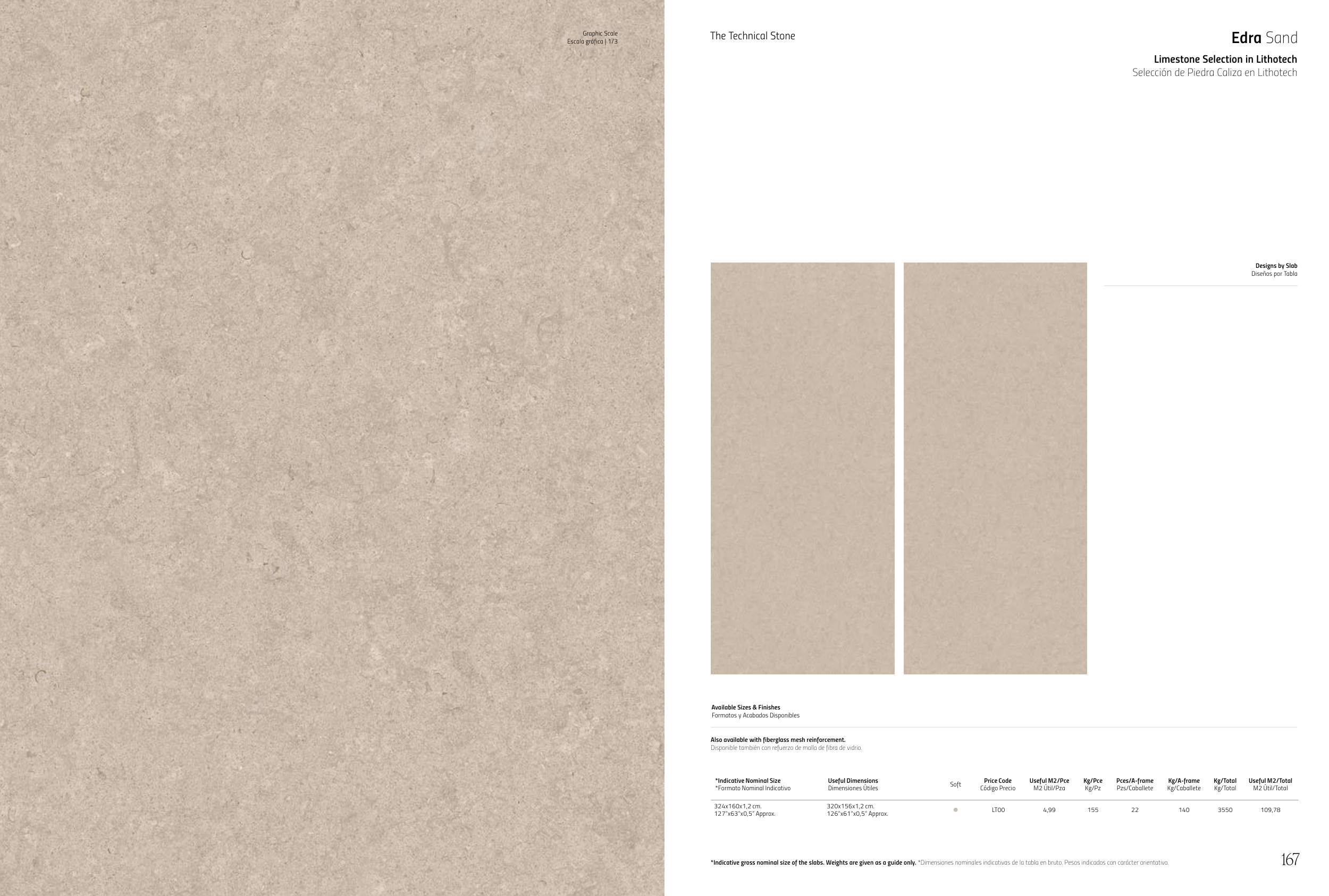 *Indicative gross nominal size of the slabs. Weights are given as a guide only. *Dimensiones nominales indicativas de la tabla en bruto. Pesos indicados con carácter orientativo.