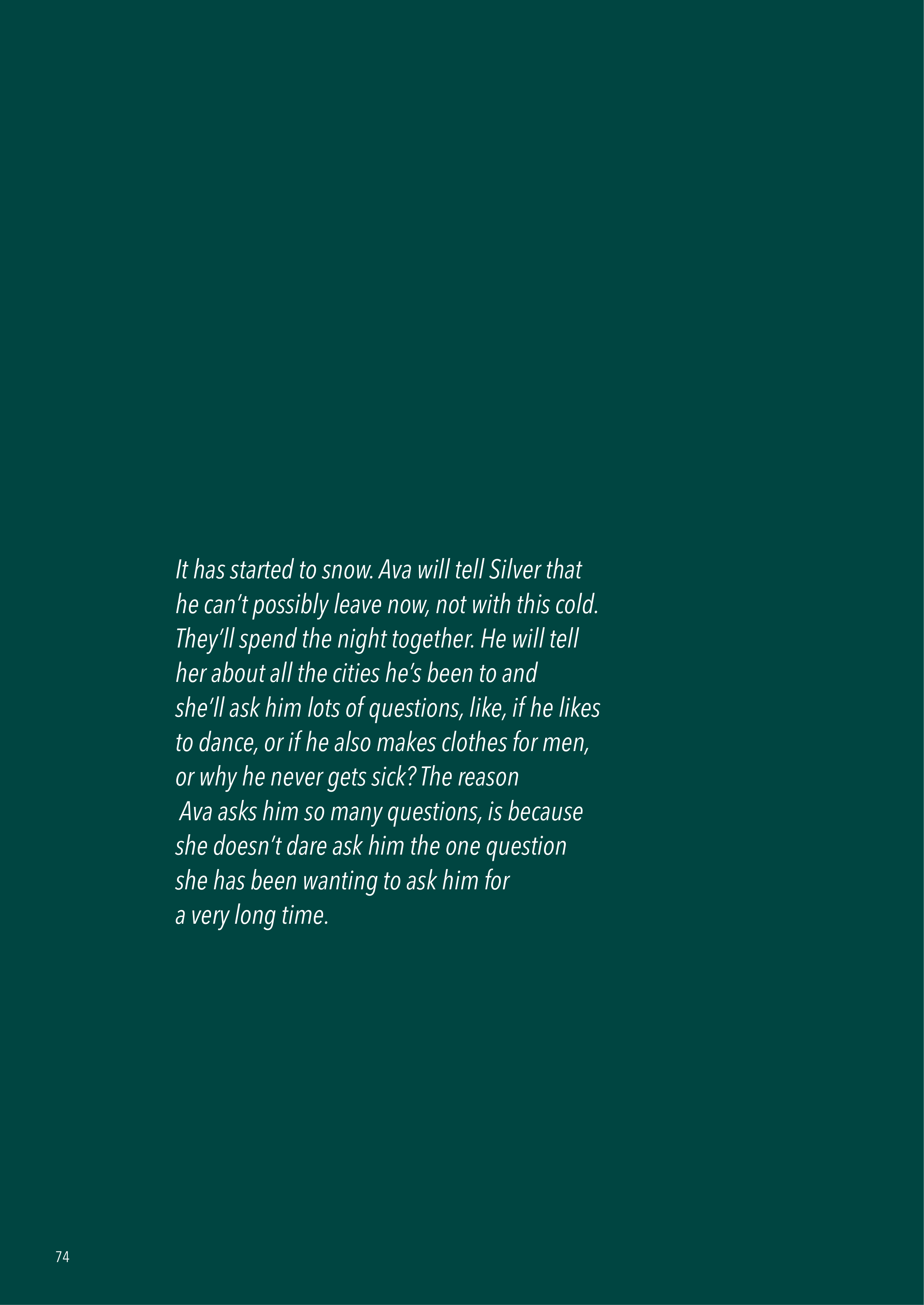 It has started to snow. Ava will tell Silver that