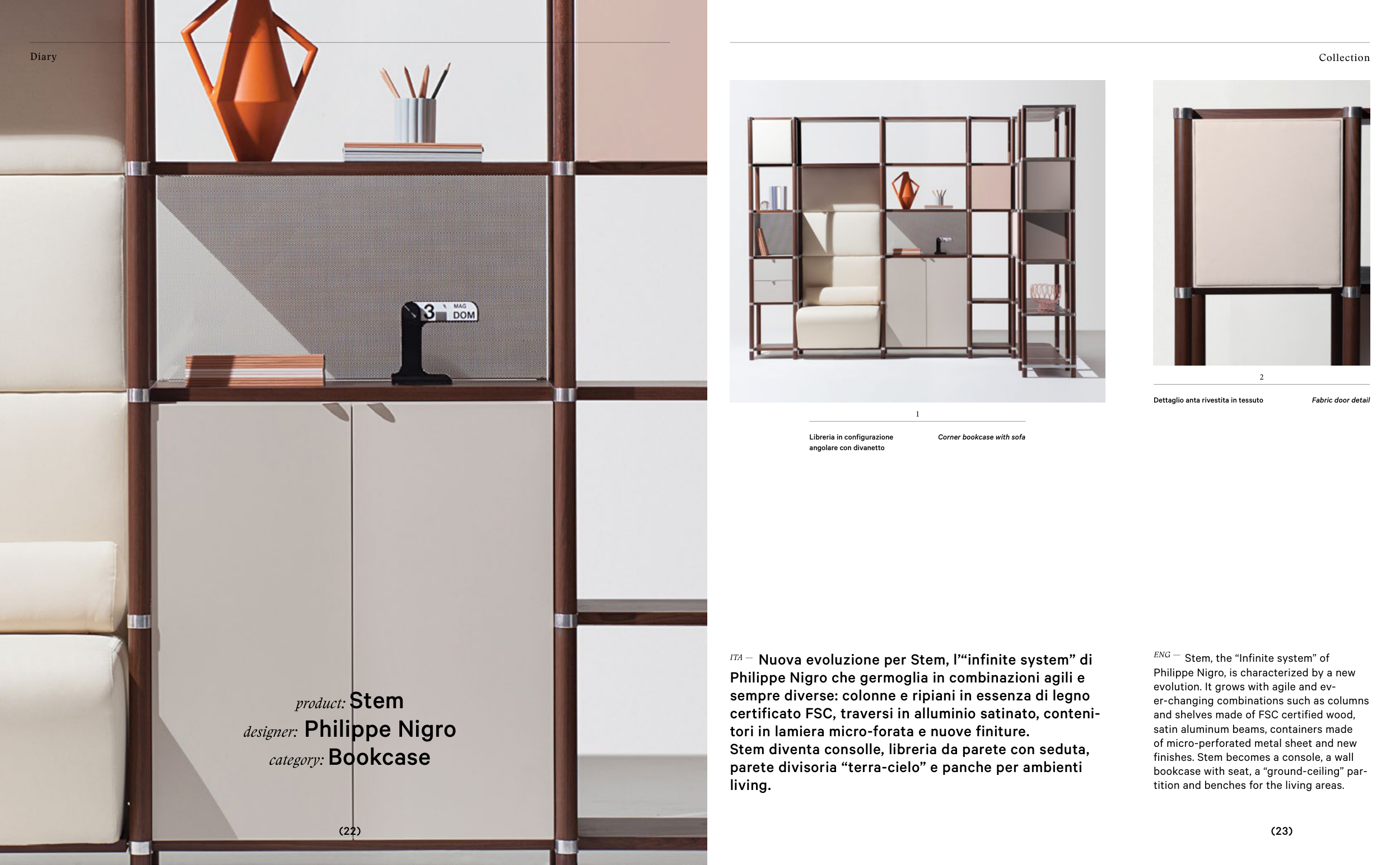Stem diventa consolle, libreria da parete con seduta,