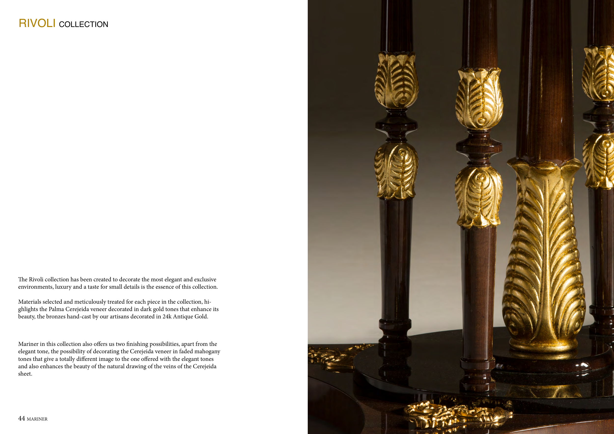 ghlights the Palma Cerejeida veneer decorated in dark gold tones that enhance its