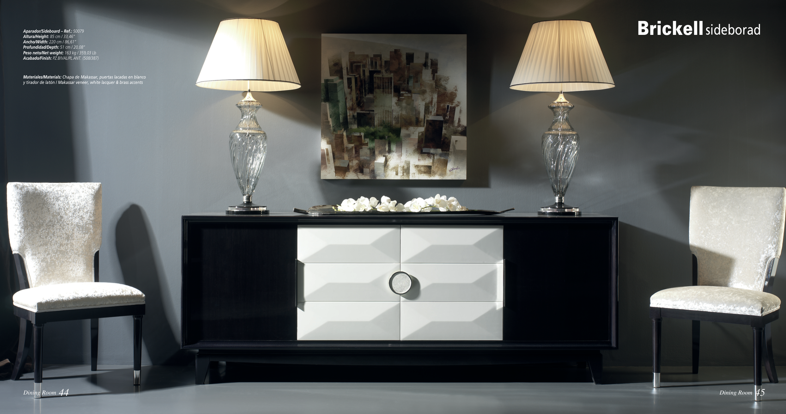 y tirador de latón / Makassar veneer, white lacquer & brass accents